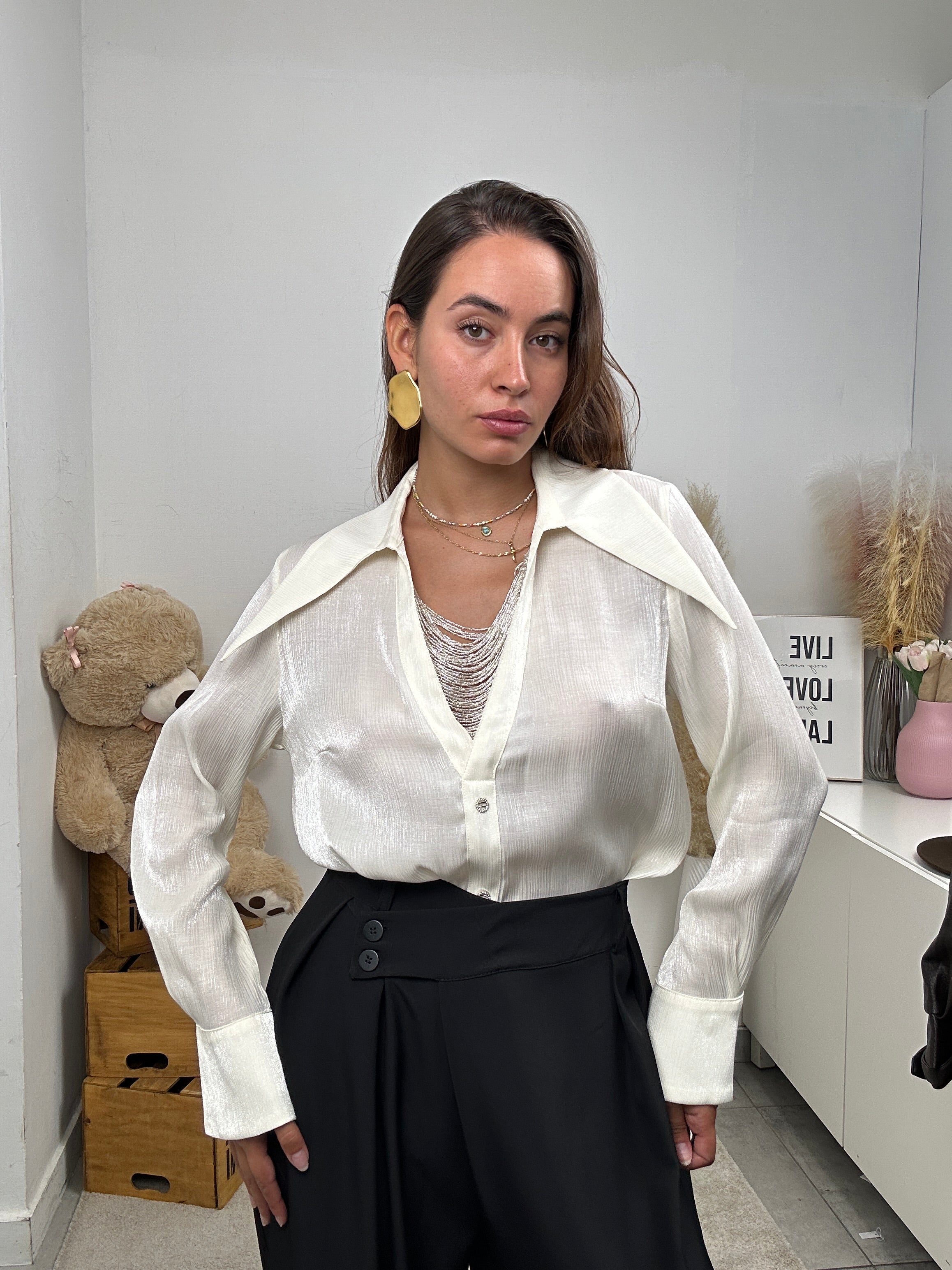 Camicia con dettaglio argento e scollo classico