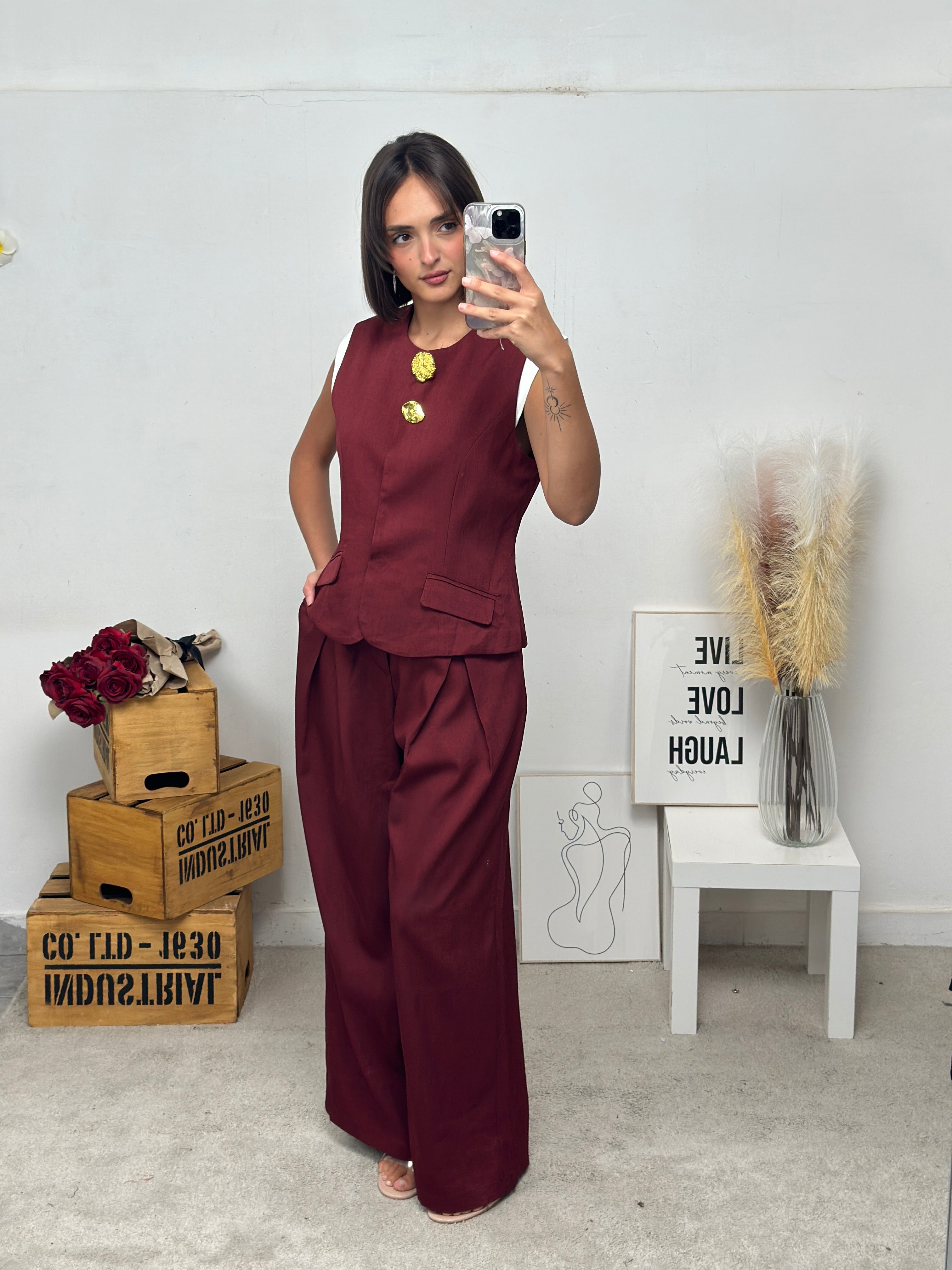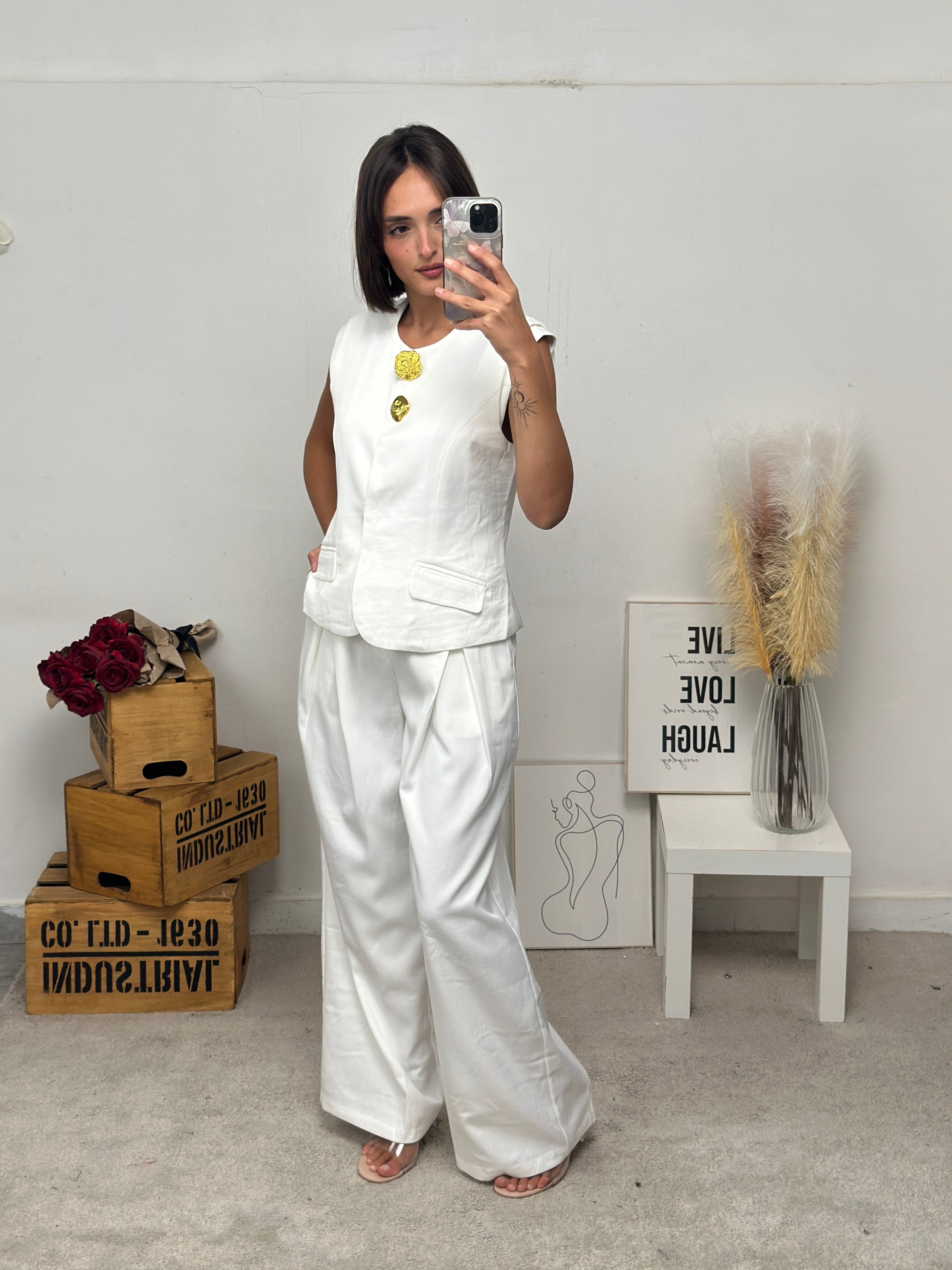 pantalone a palazzo, chiusura con bottone