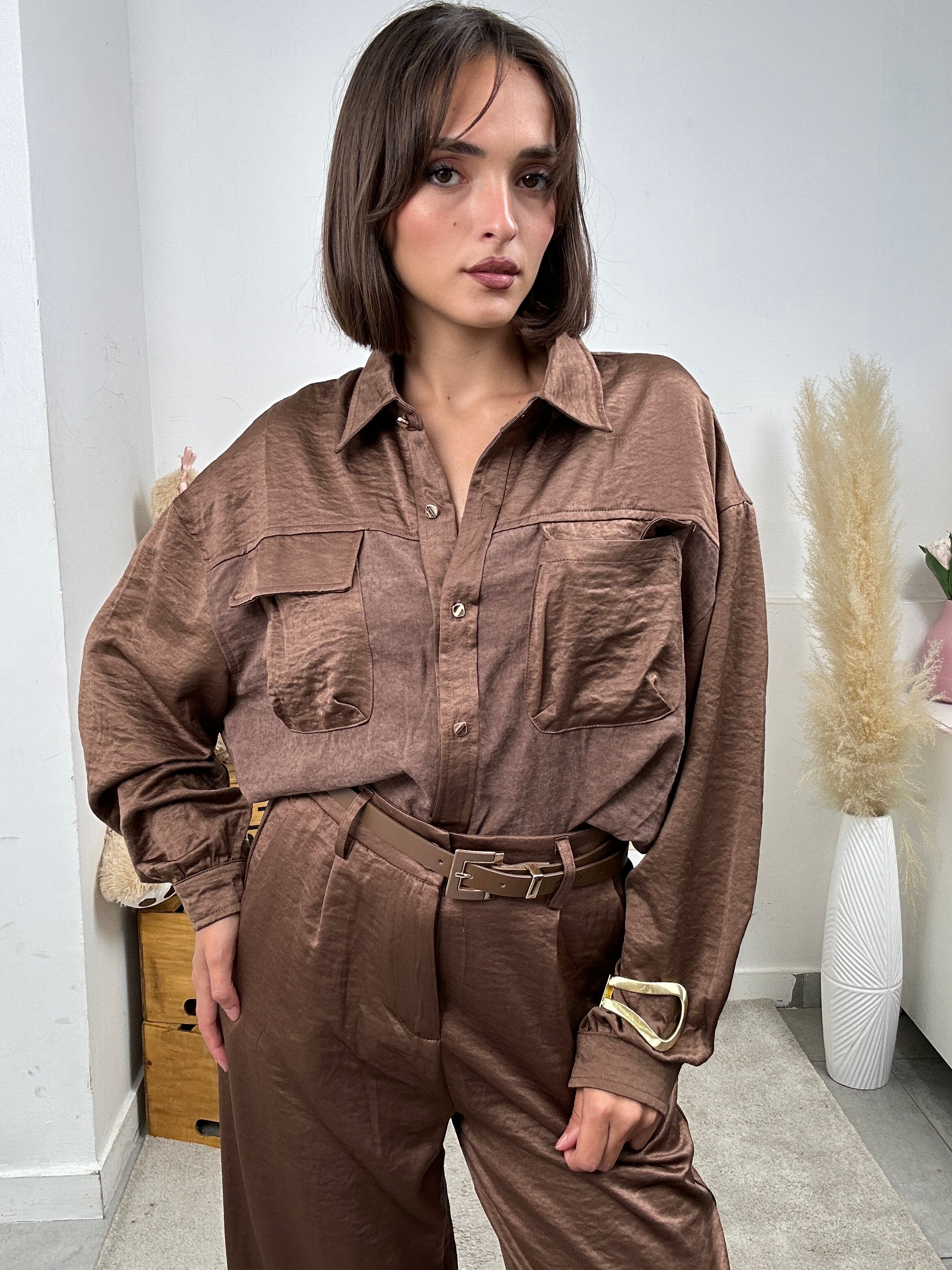 Camicia con colletto classico e tasche laterali finte
