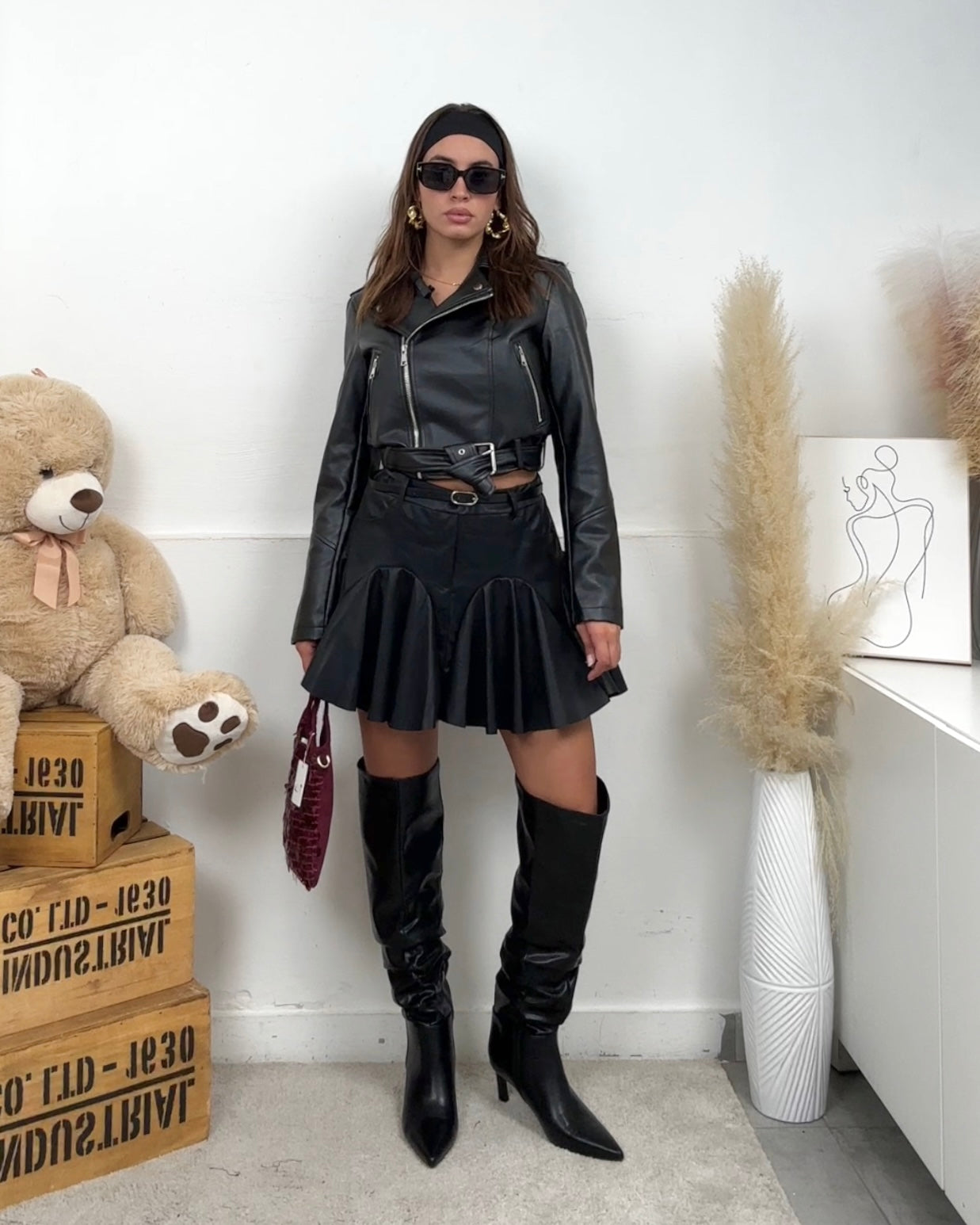 Giubbotto in ecopelle con zip e taschini finti laterali