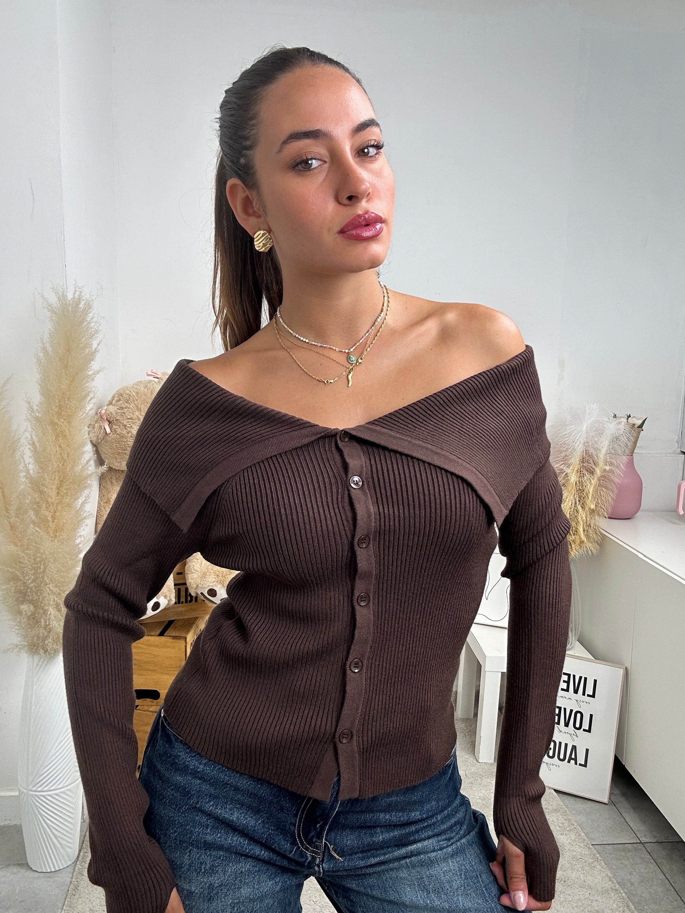 Maglia CLELIA con scollo a barca e chiusura con manicotto