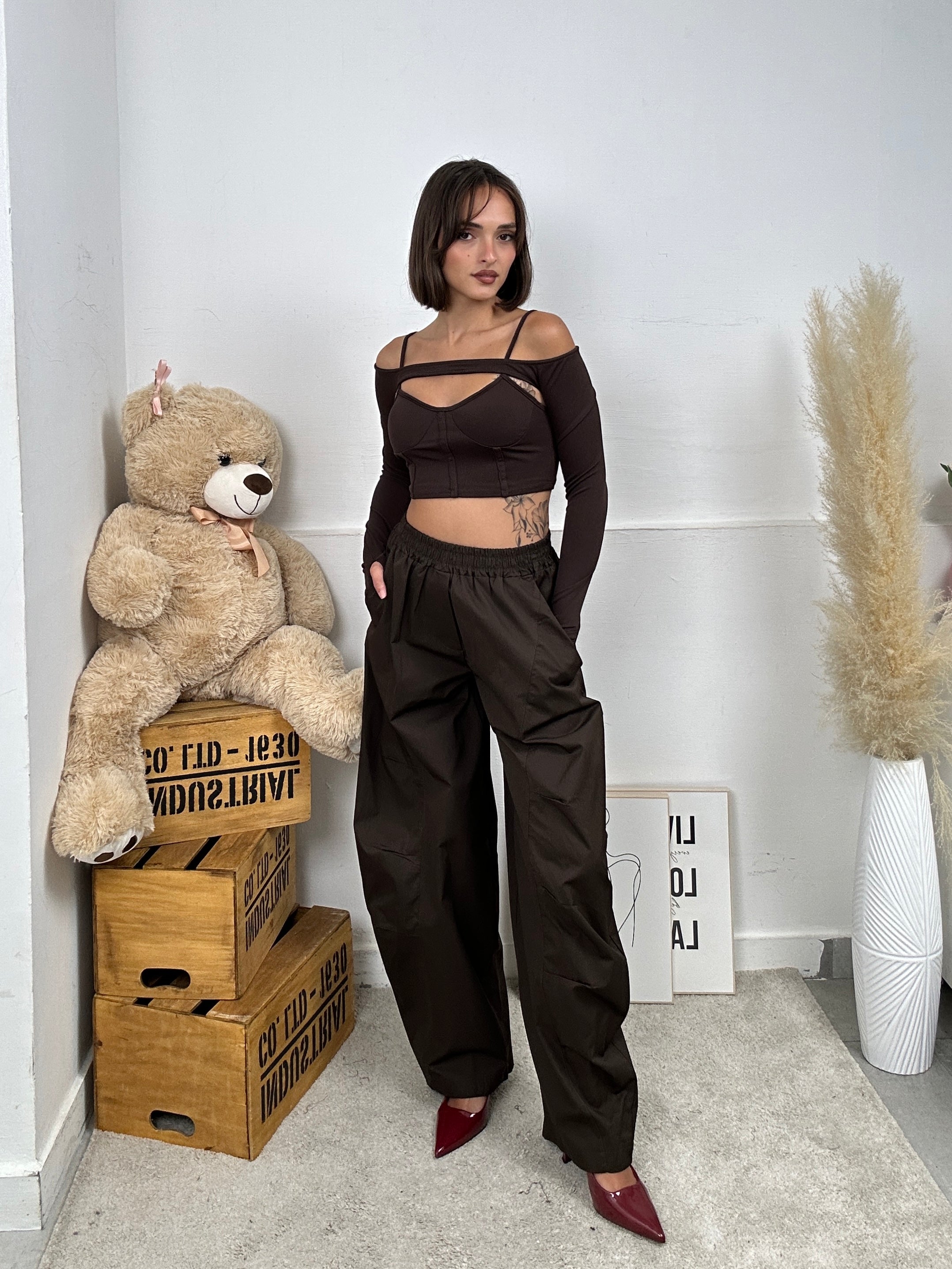 Maglia a due pezzi a costine composta da top con spalline sottili e coprispalle
