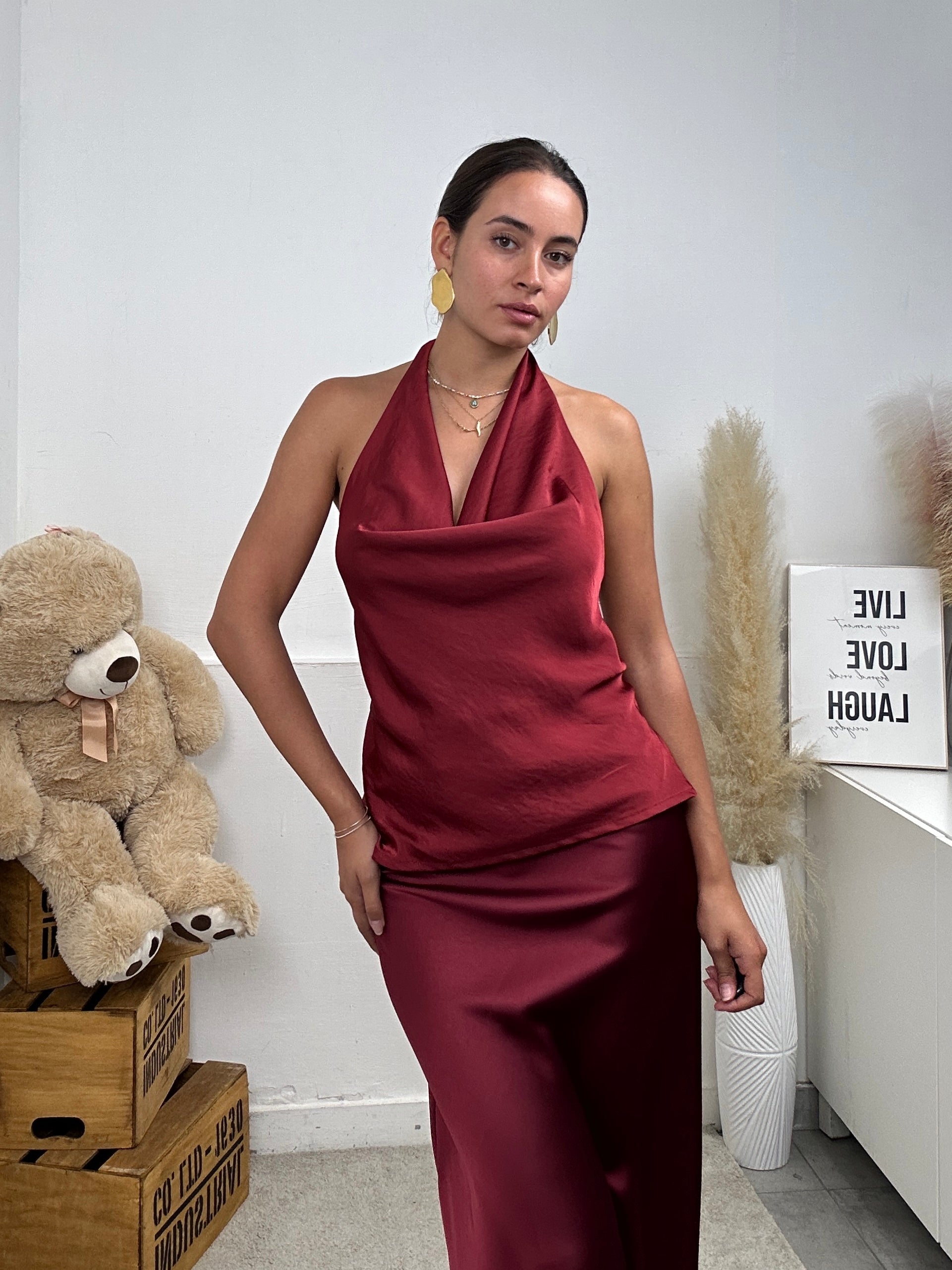Top con schiena scoperta e spalline larghe che si annodano al collo e lasciano la schiena scoperta