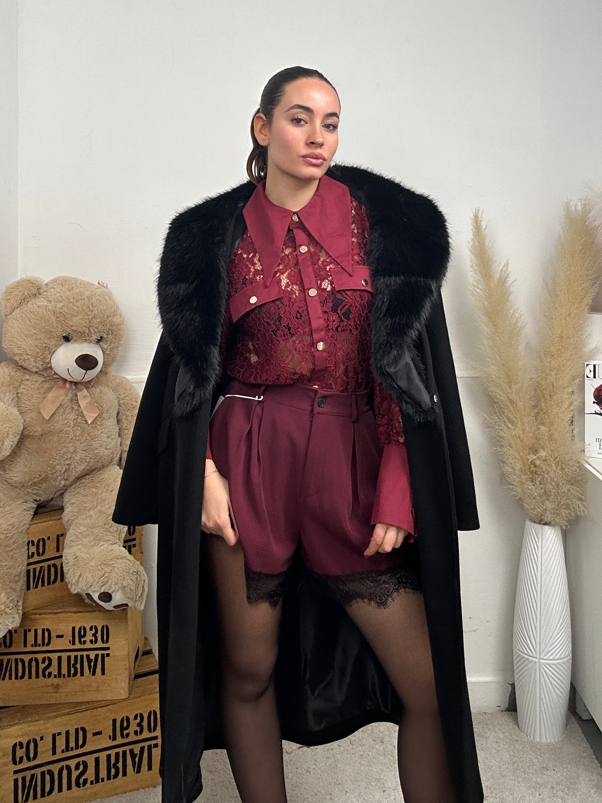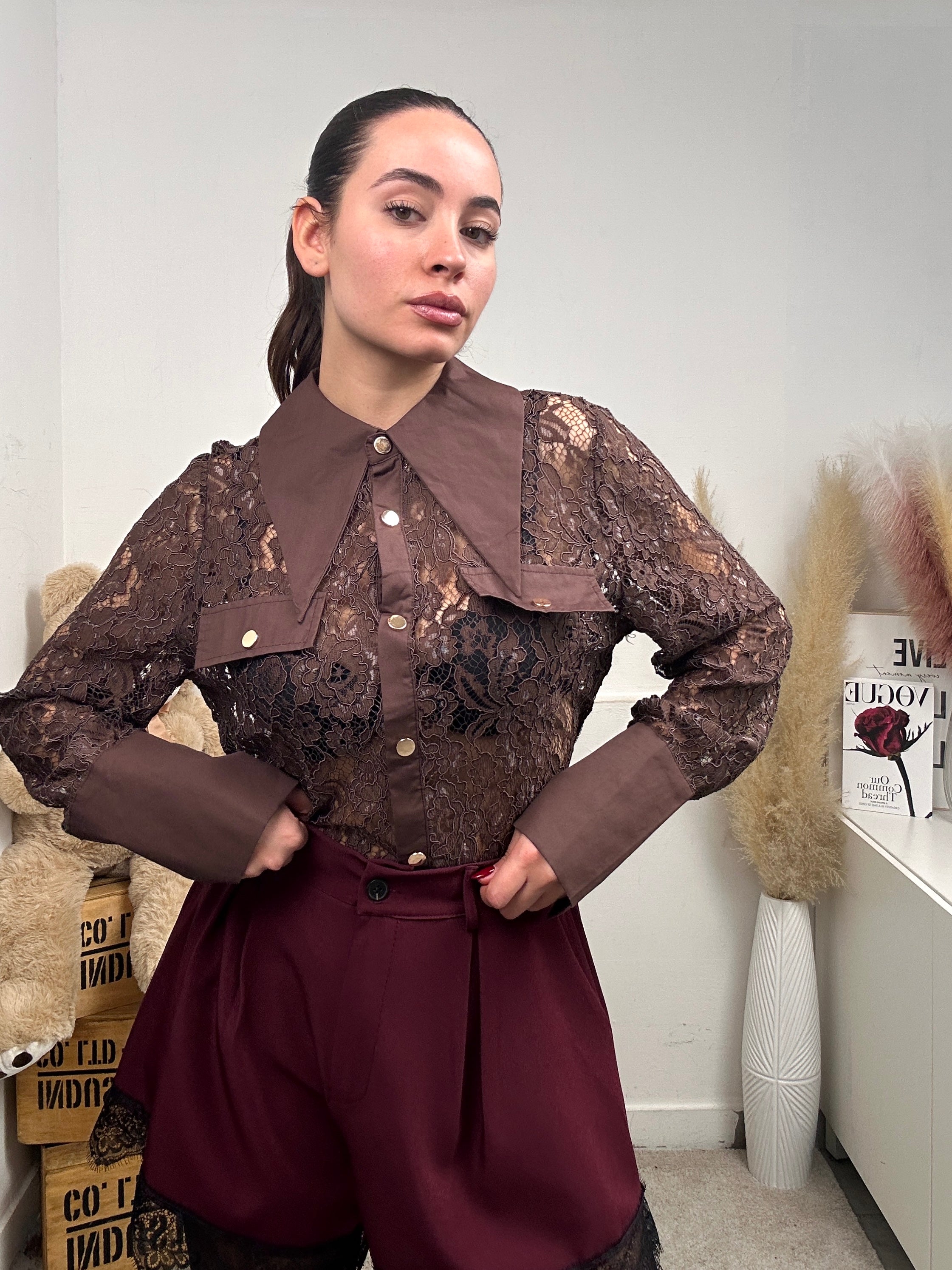 Camicia RICAMATA, a manica lunga, con chiusura con bottoni frontale, tasche finte frontali, colletto e maniche in seta.