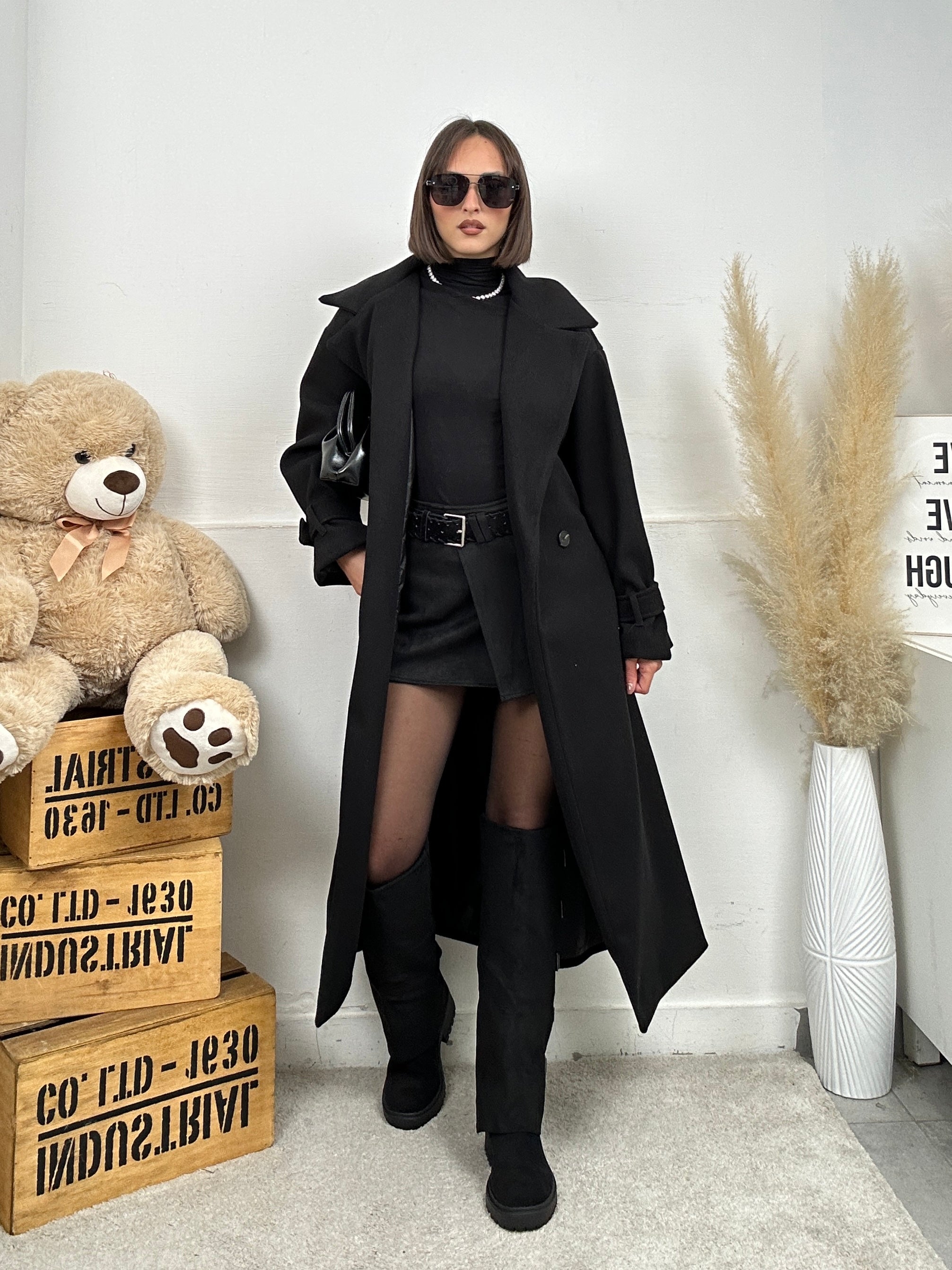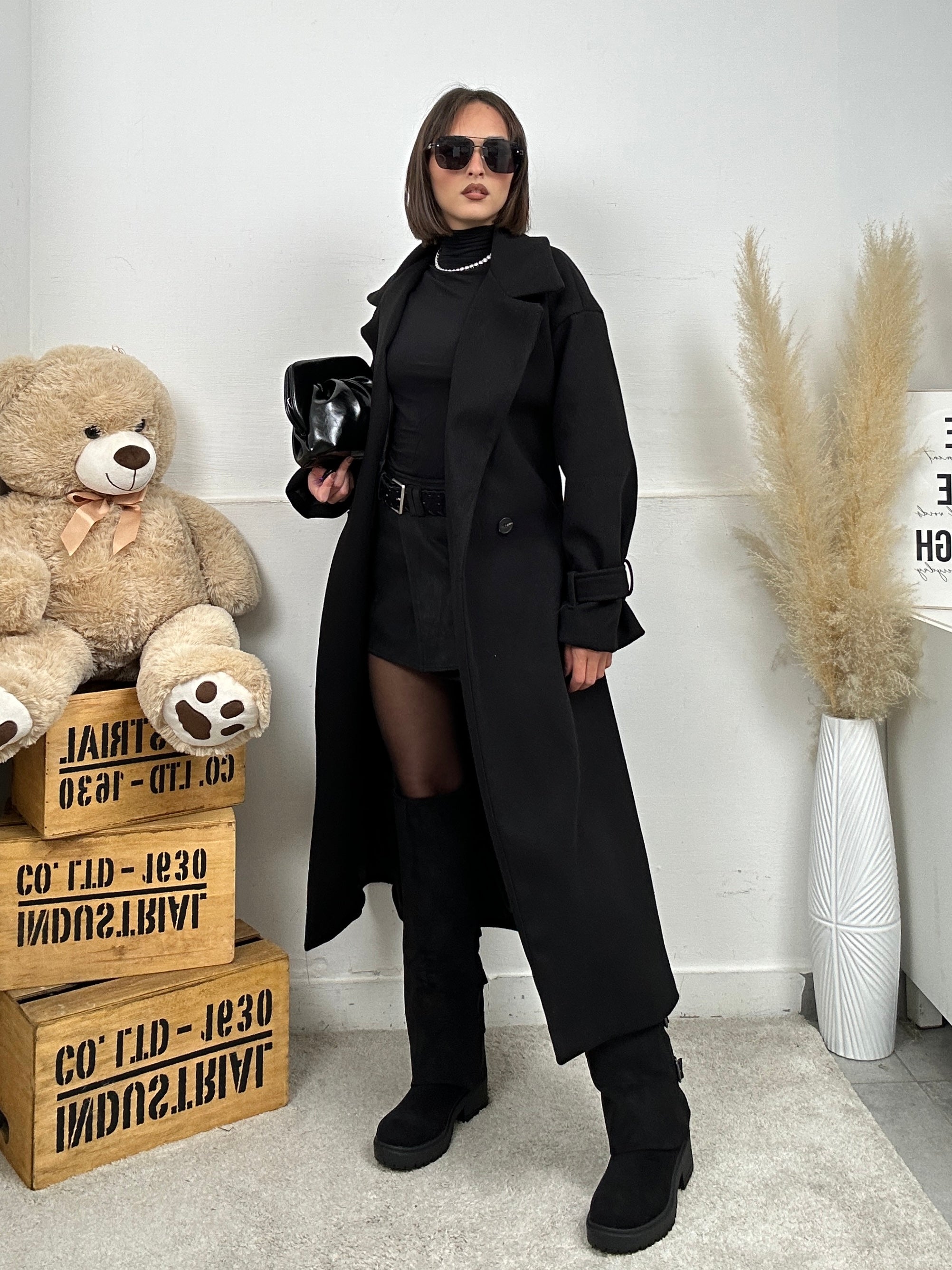 Cappotto MATRIX, lungo, presenta colletto e chiusura con bottone e cintura in vita con fodera all'interno.