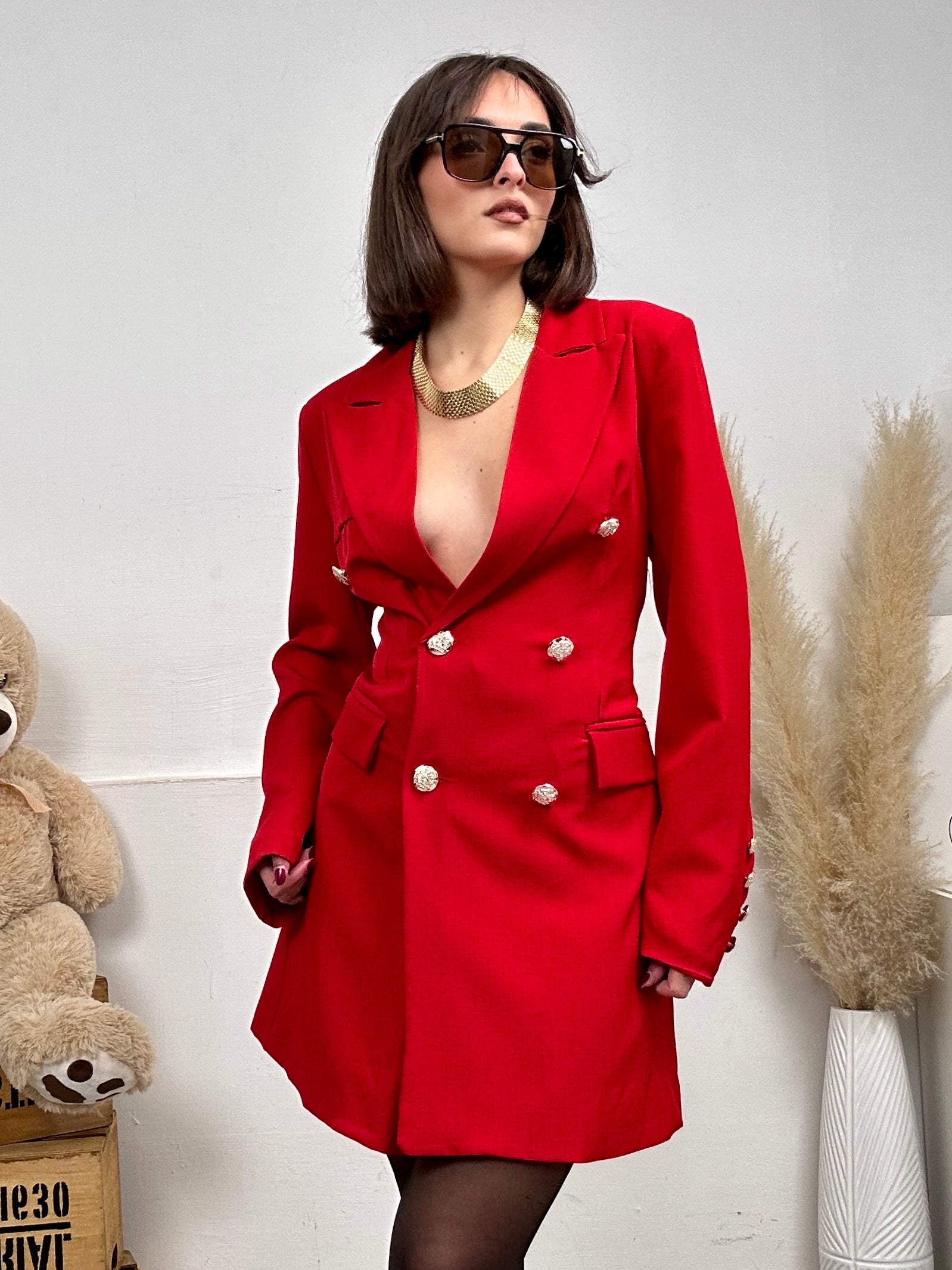 Giacca PRO, a vestito con maniche lunghe e fodera all'interno, con scollo a V e colletto, chiusura con bottoni