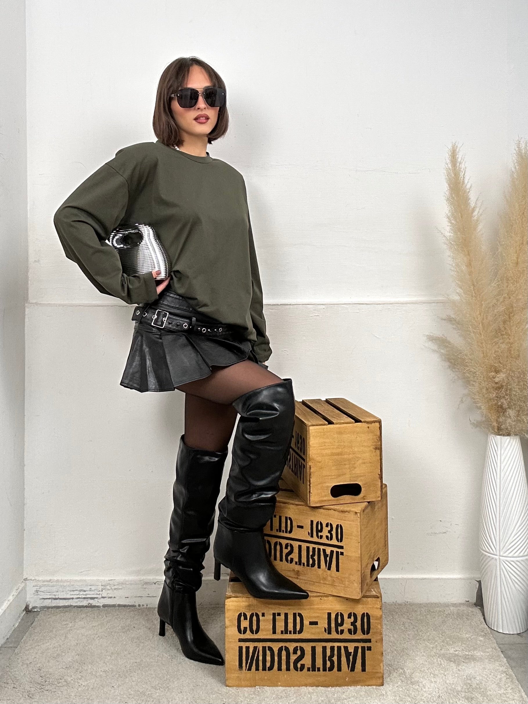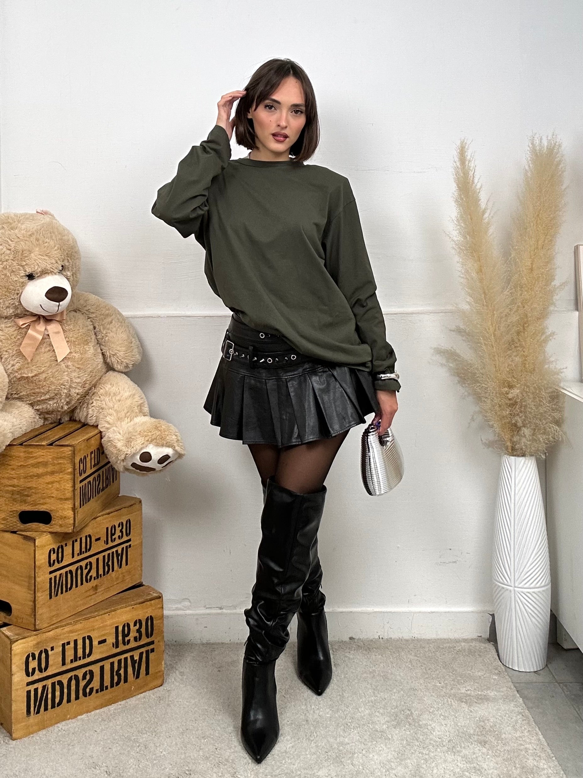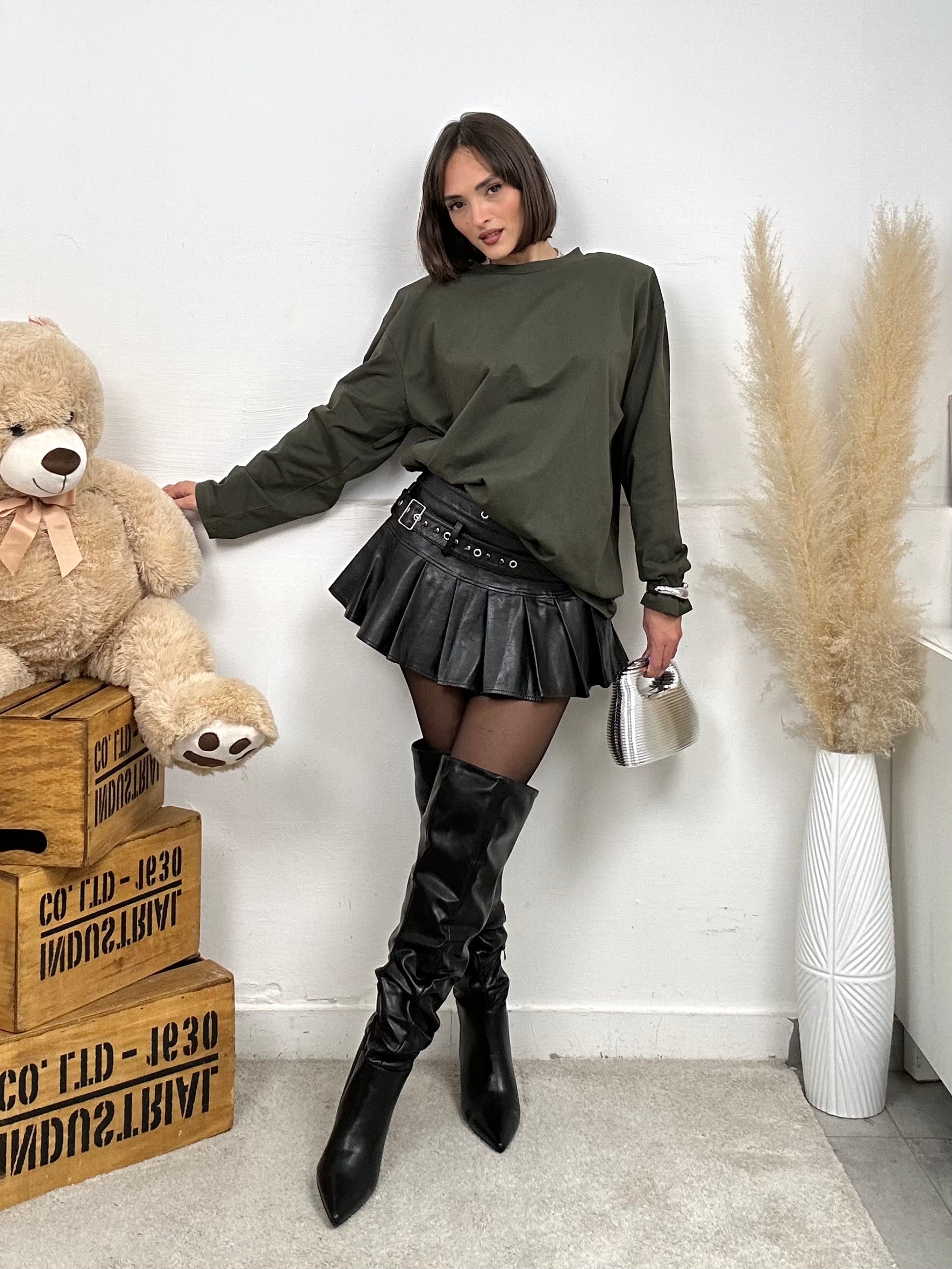 Gonna MUSA, in ecopelle, vita bassa, presenta due cinture sulla vita.