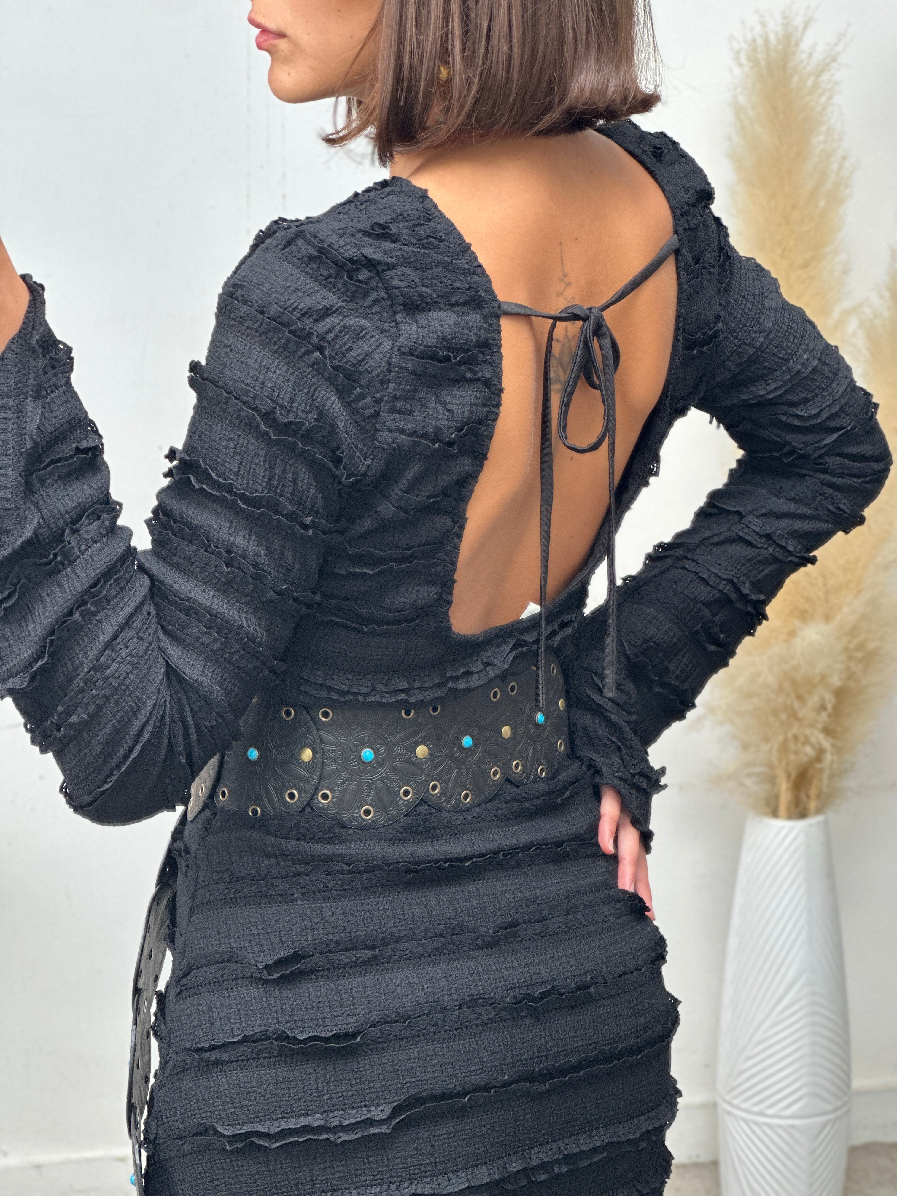 Abito GUENDA a maniche lunghe, con schiena scoperta