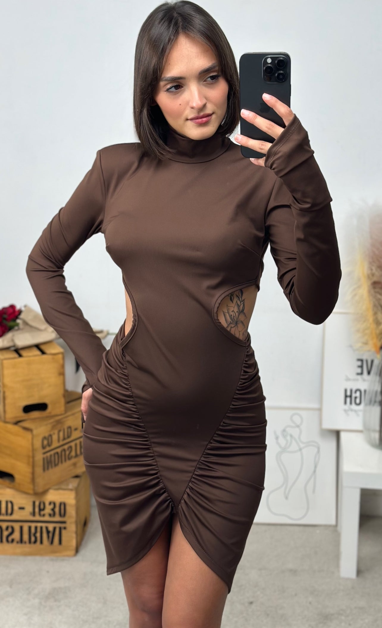Abito SWEETY CORTO con maniche lunghe e schiena scoperta