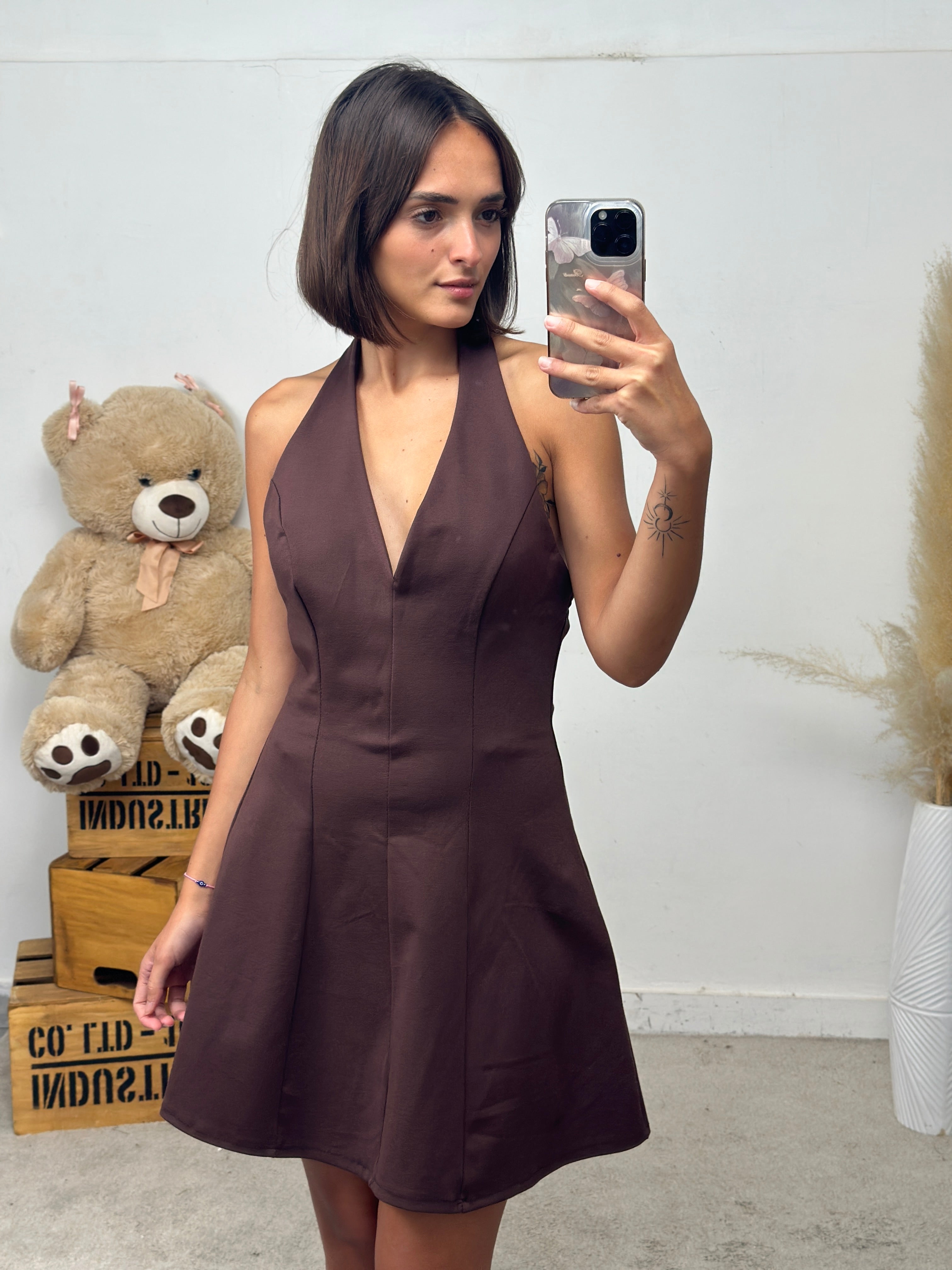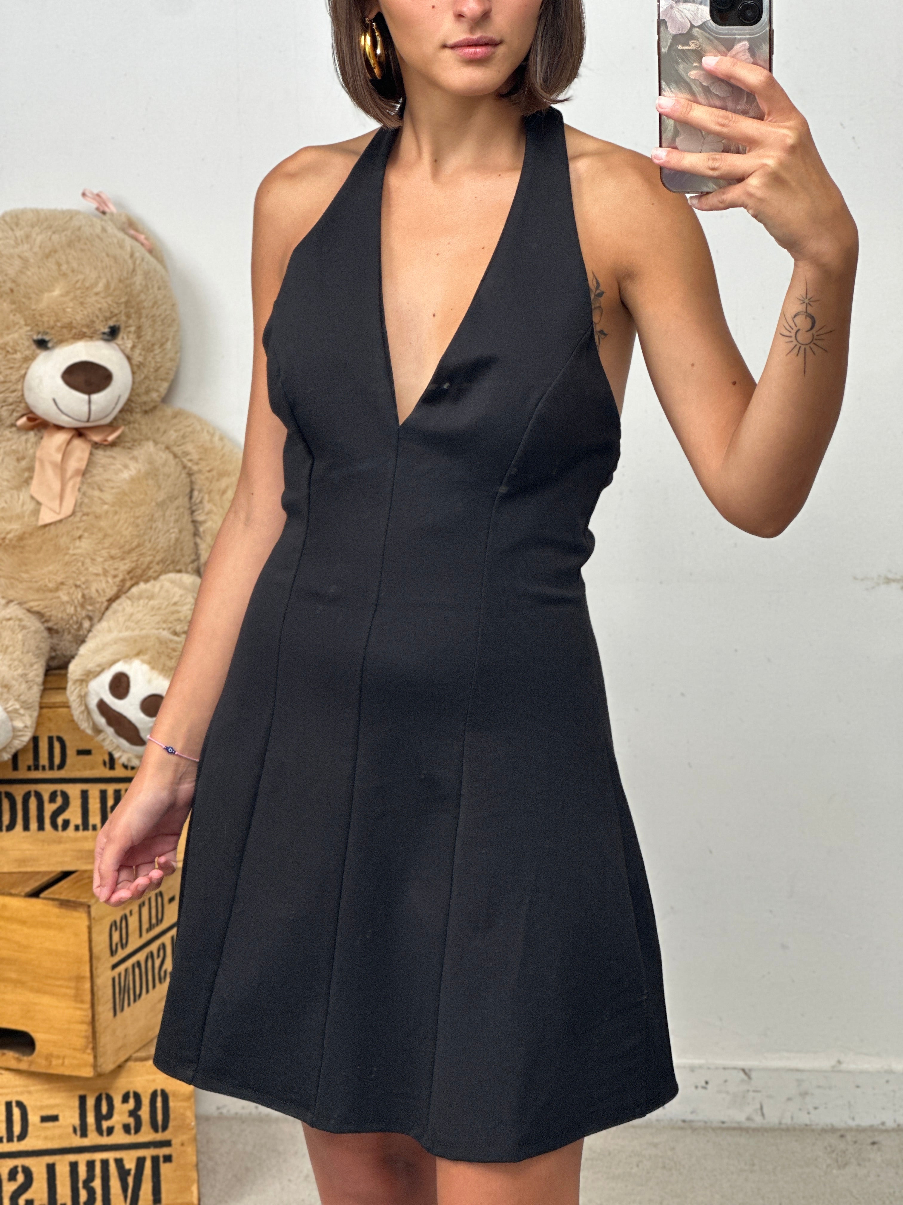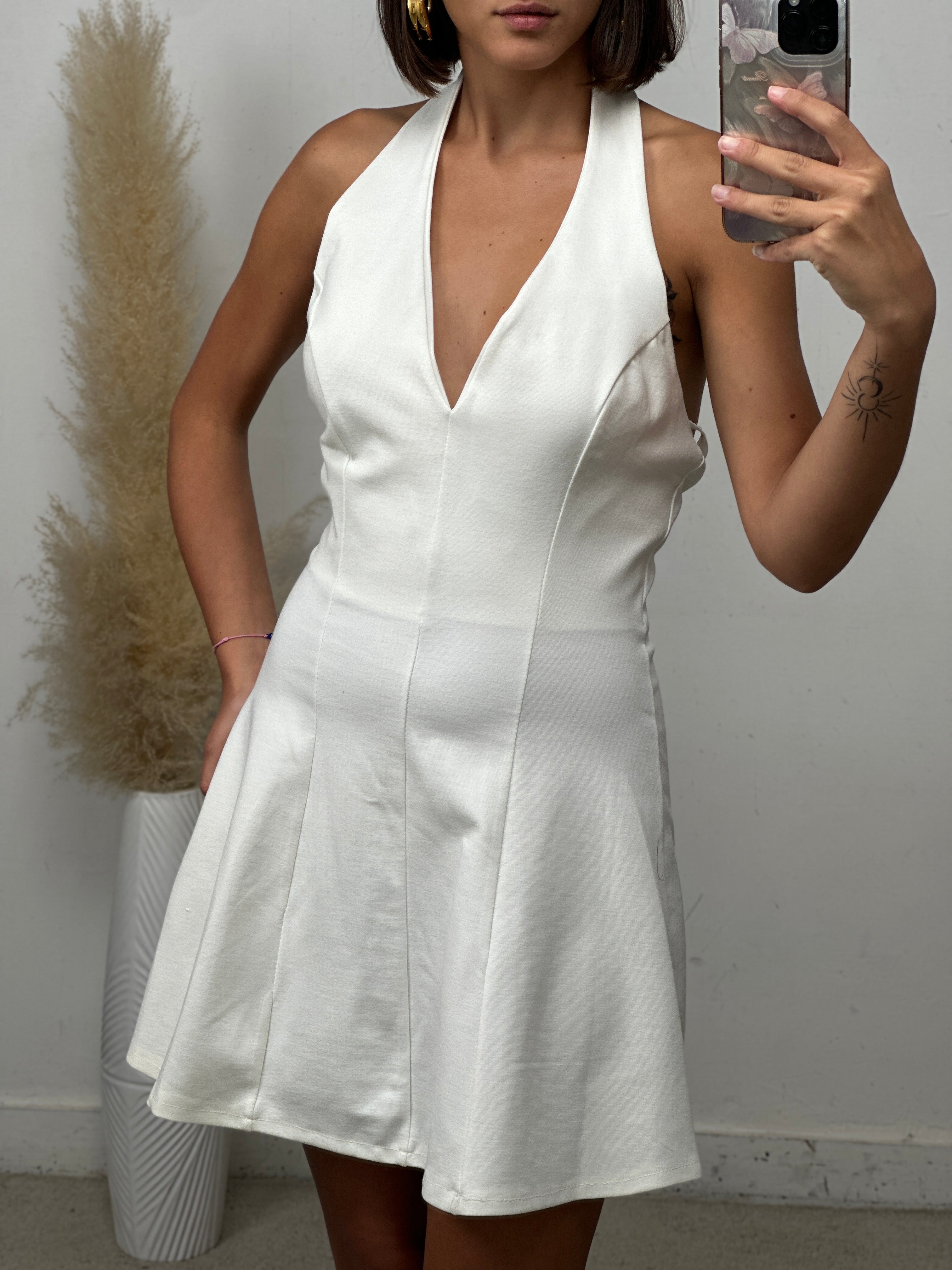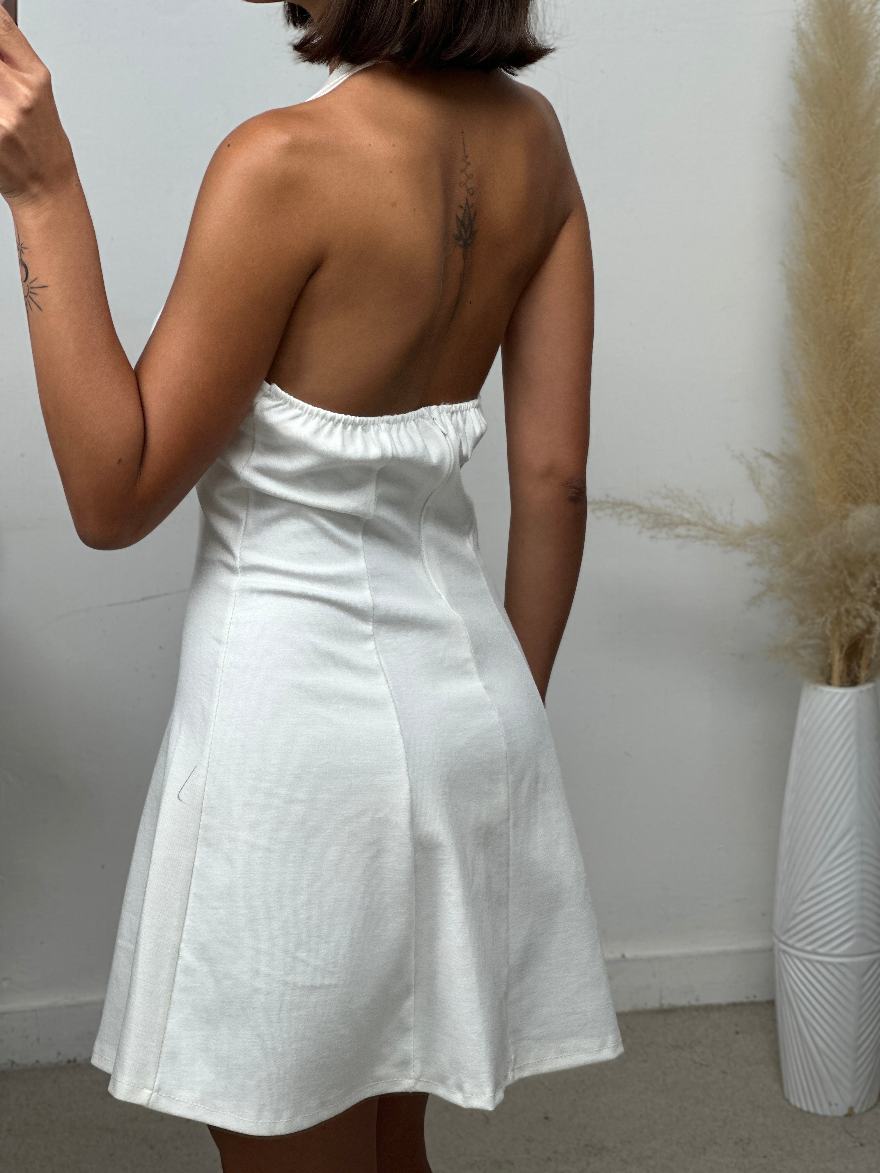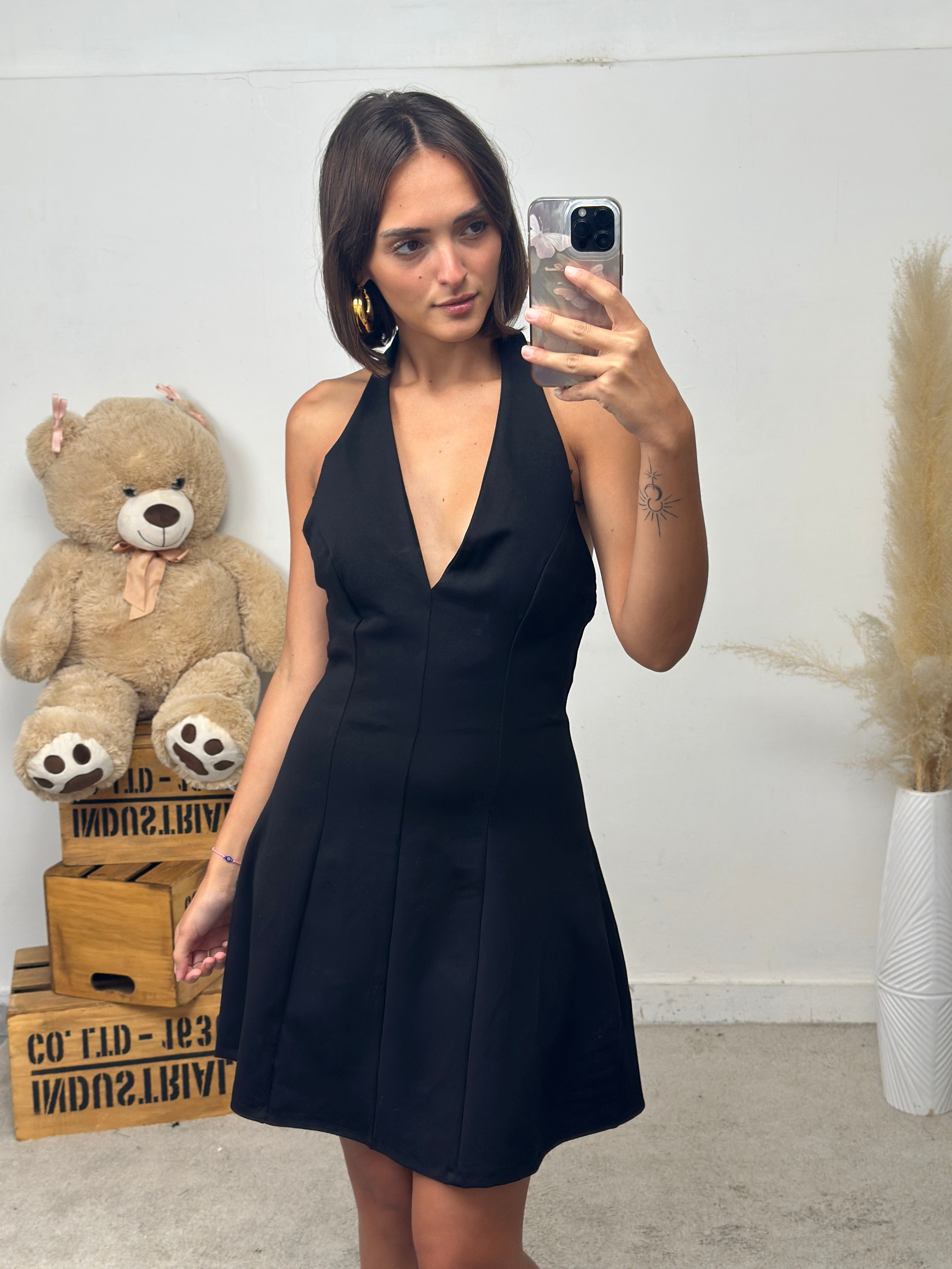 Abito LUCY con scollo a V e palline larghe che si annodano al collo e lasciano la schiena scoperta