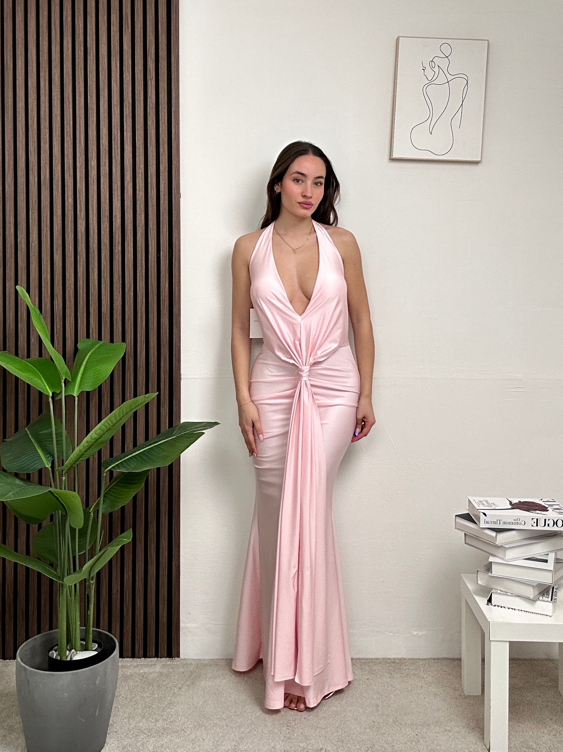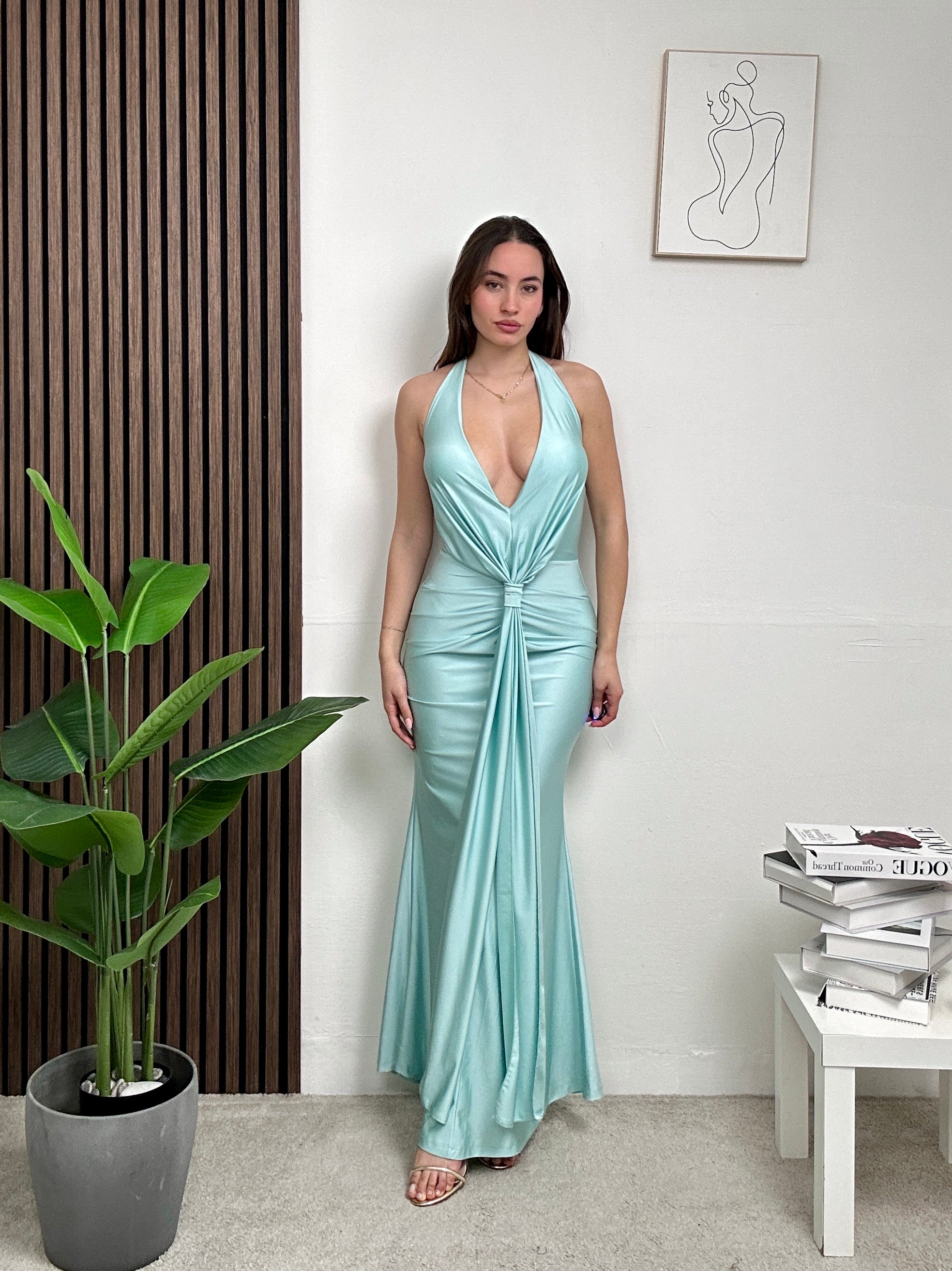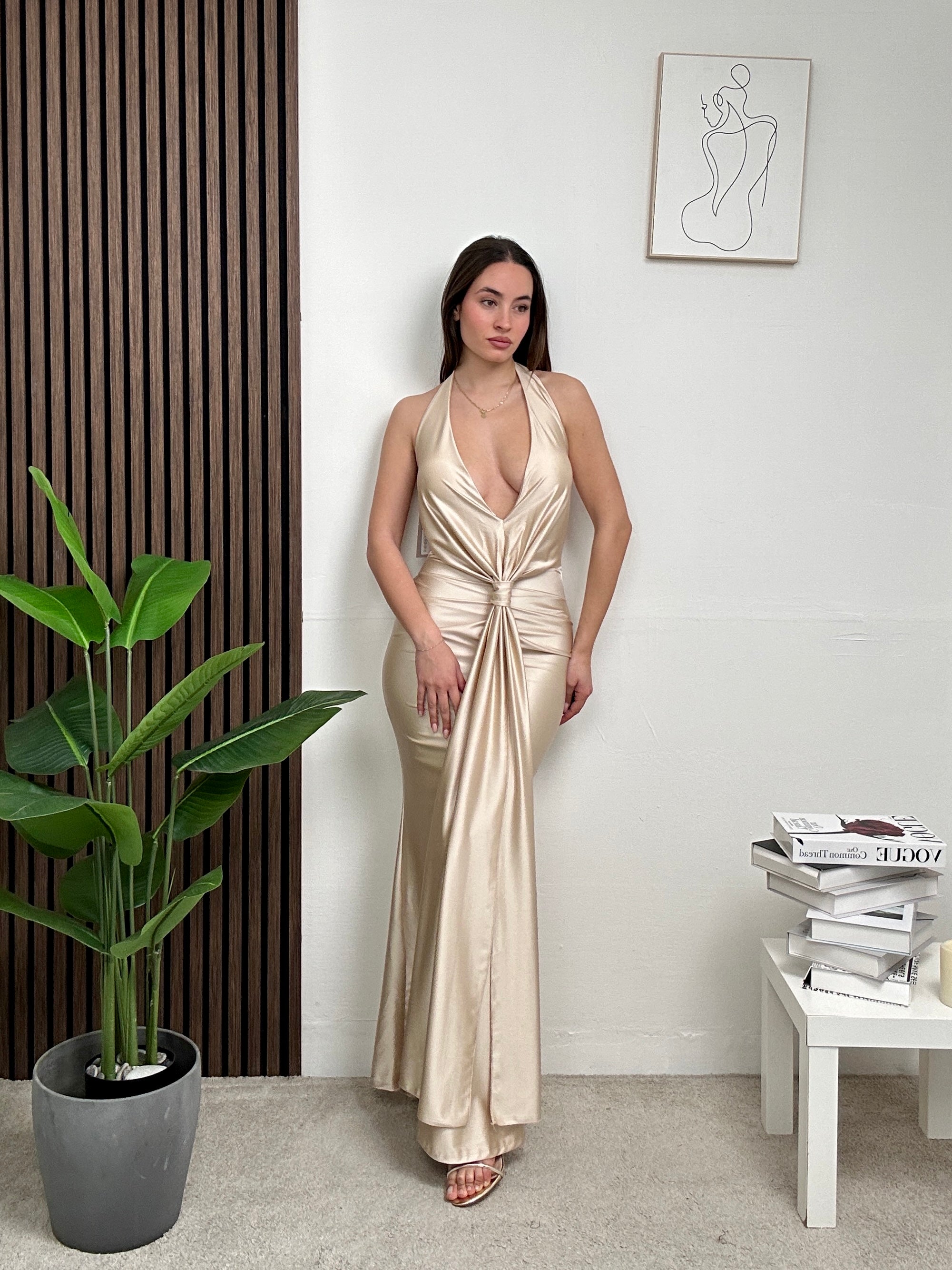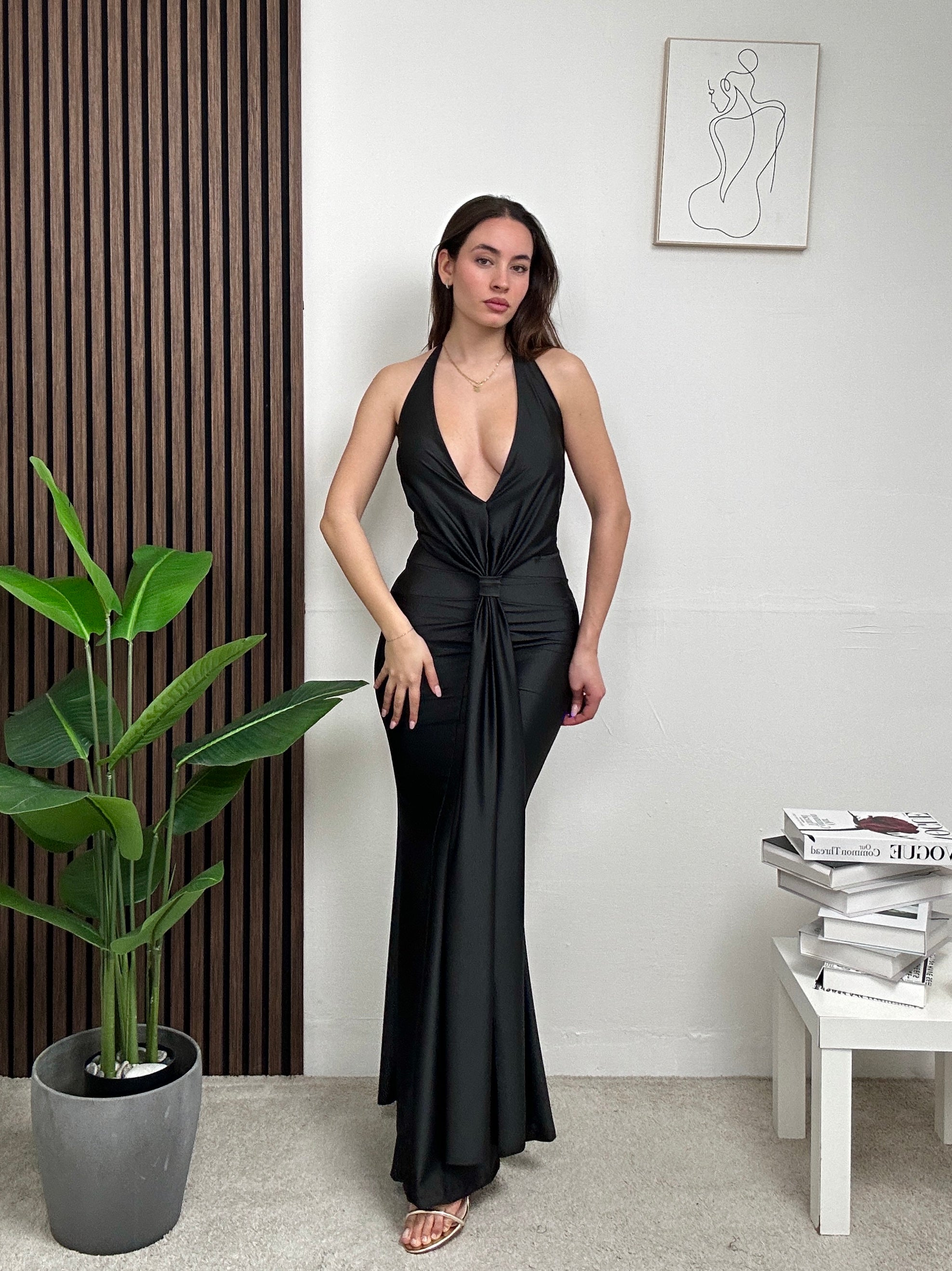 Abito LUXURY e un abito elegante con scollo a V,schiena coperta,ha un nodo frontale ed é lungo fino alla caviglia