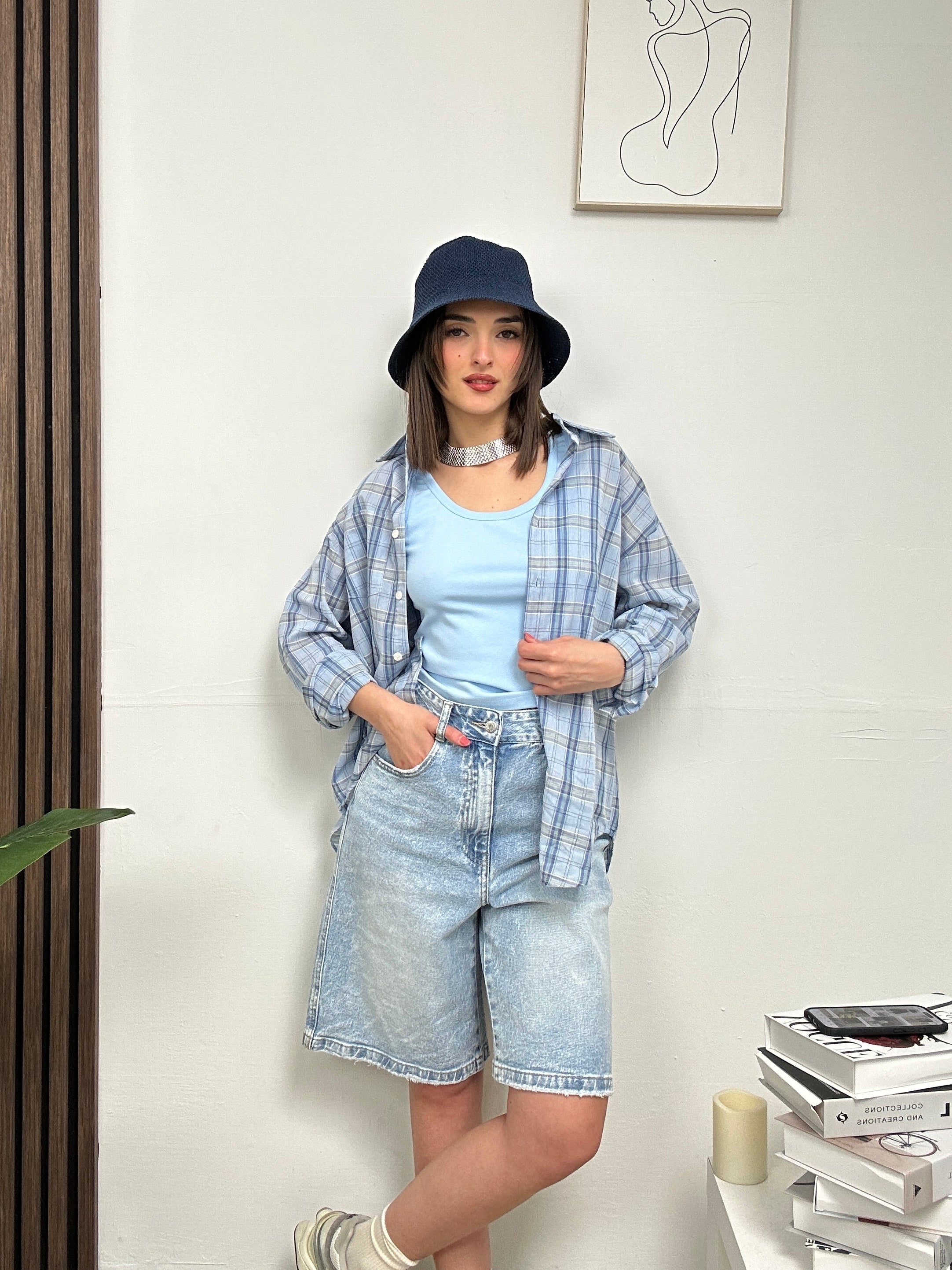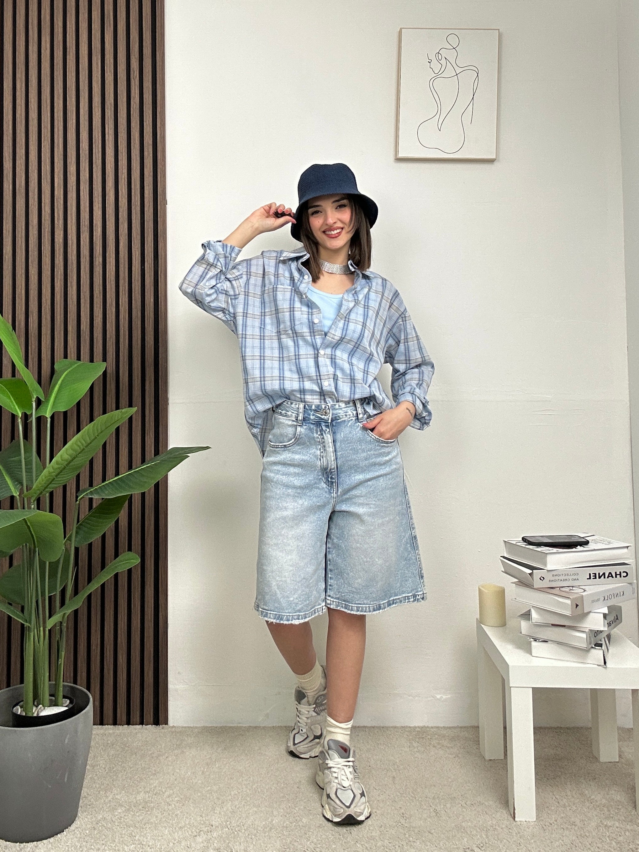 bermuda LORENS, corto appena dopo al ginocchio con tasche posteriori e frontali e chiusura con zip e bottoncino.