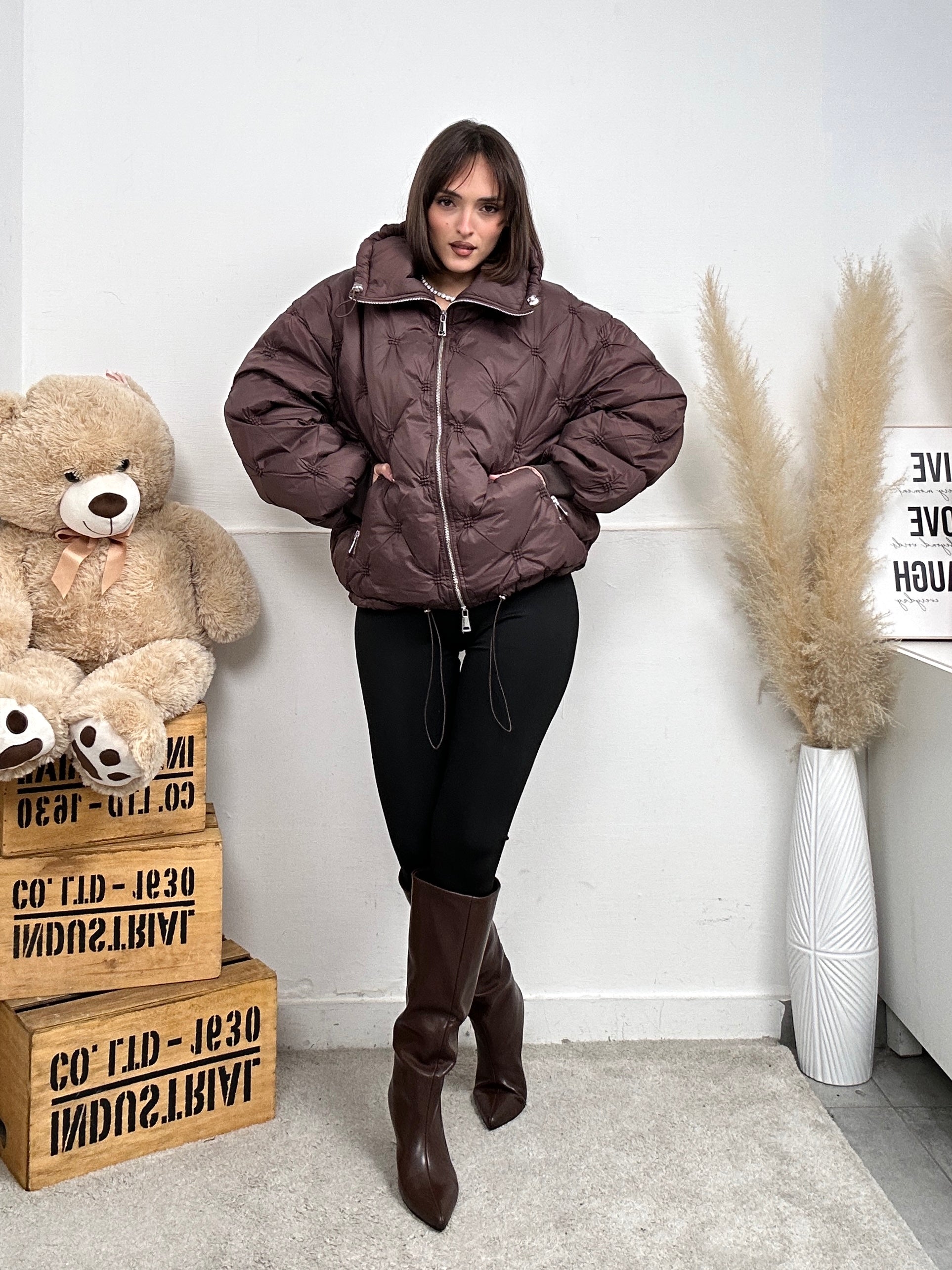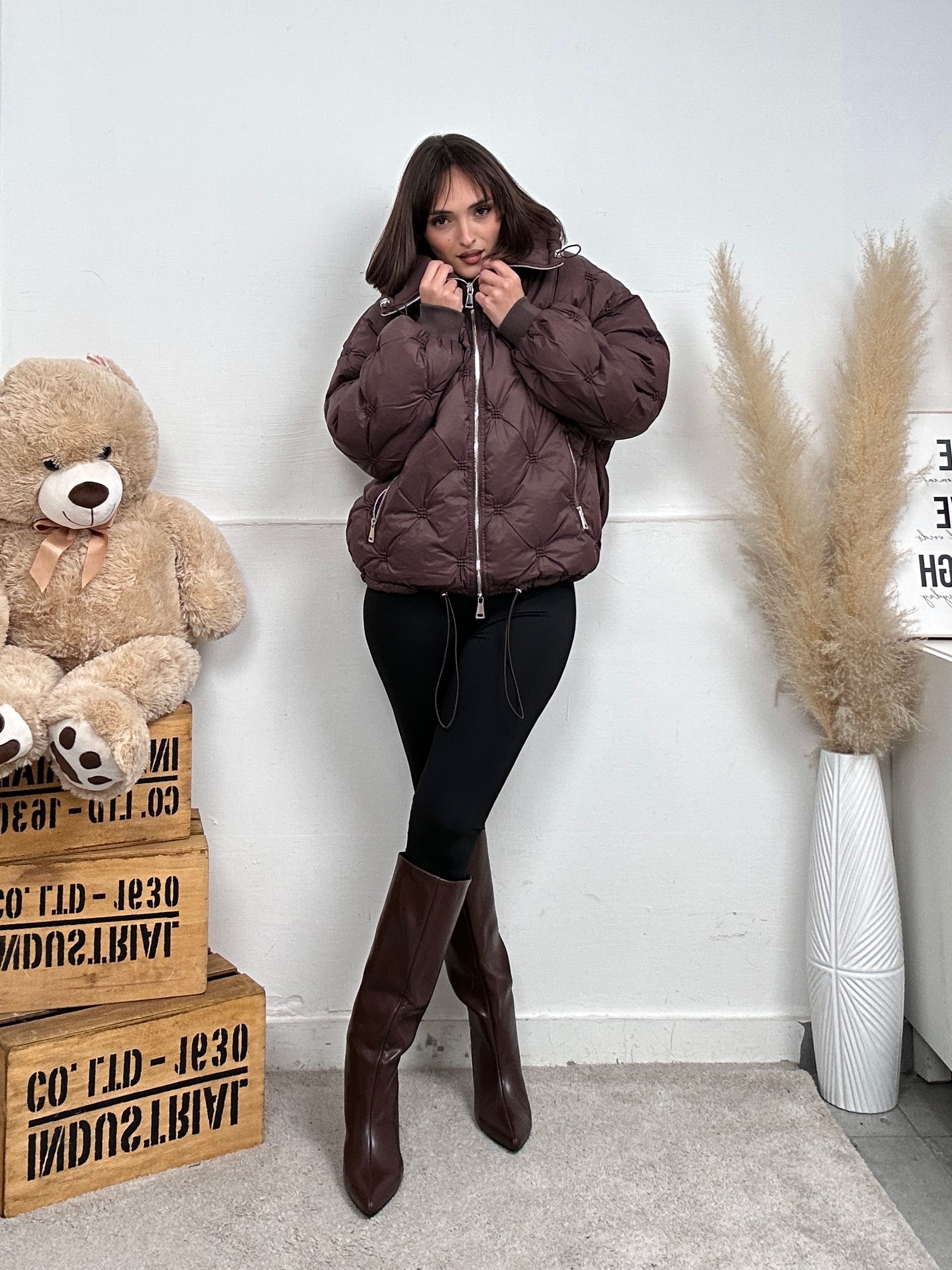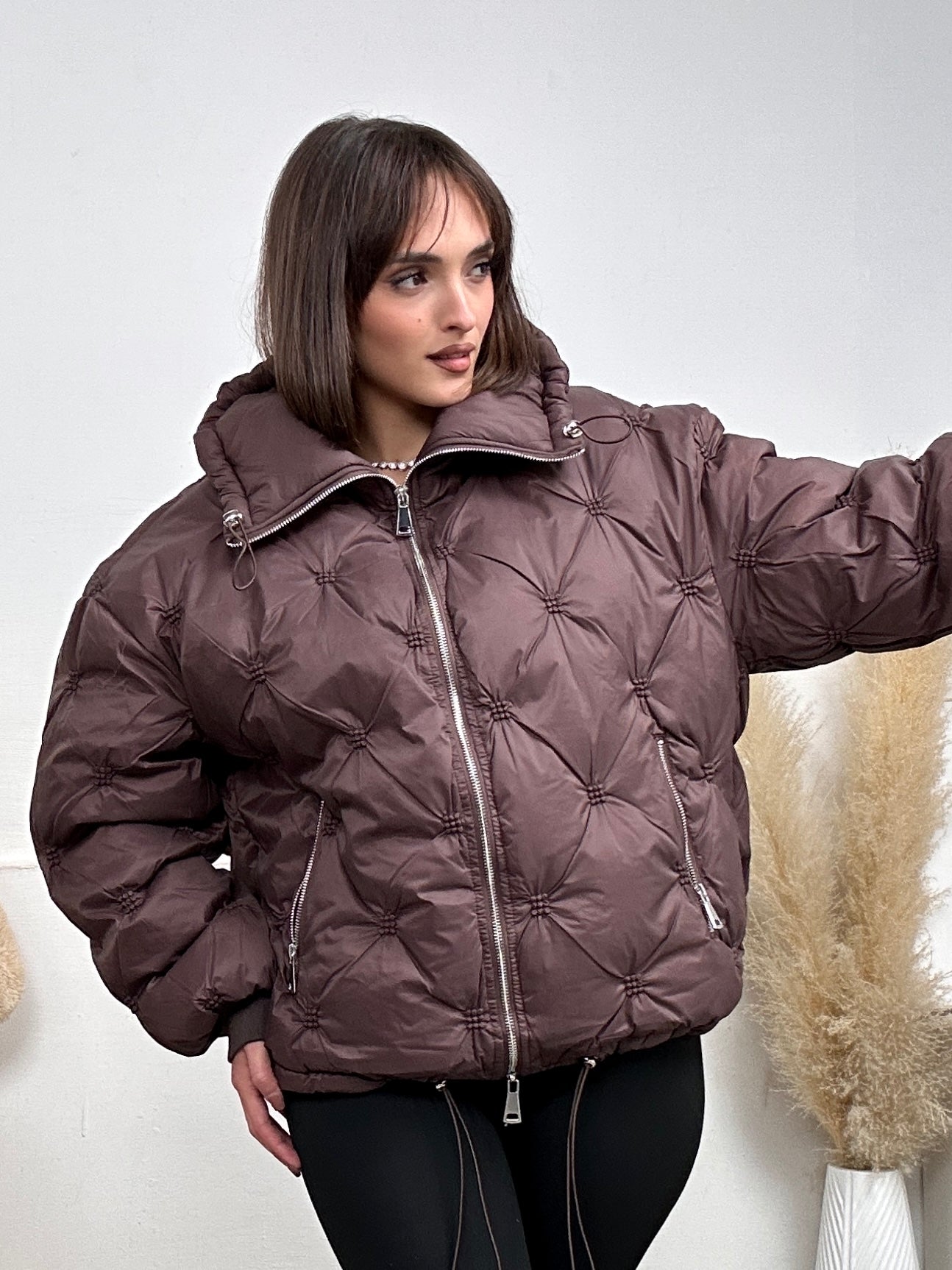 Bomber BAD, Oversize, con collo alto, due tasche laterali, molla in vita e chiusura con cerniera.