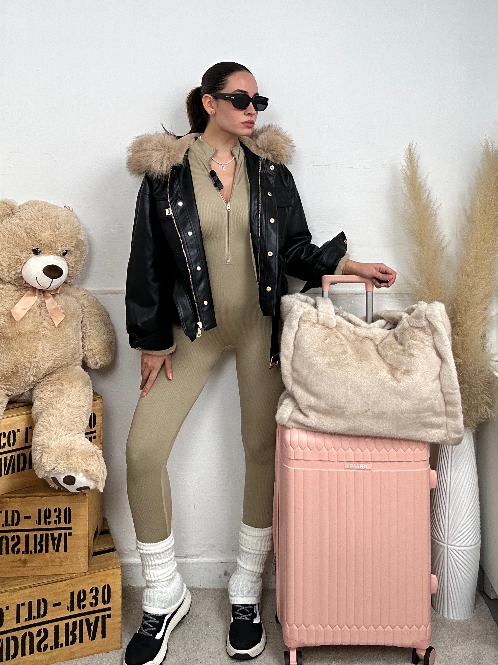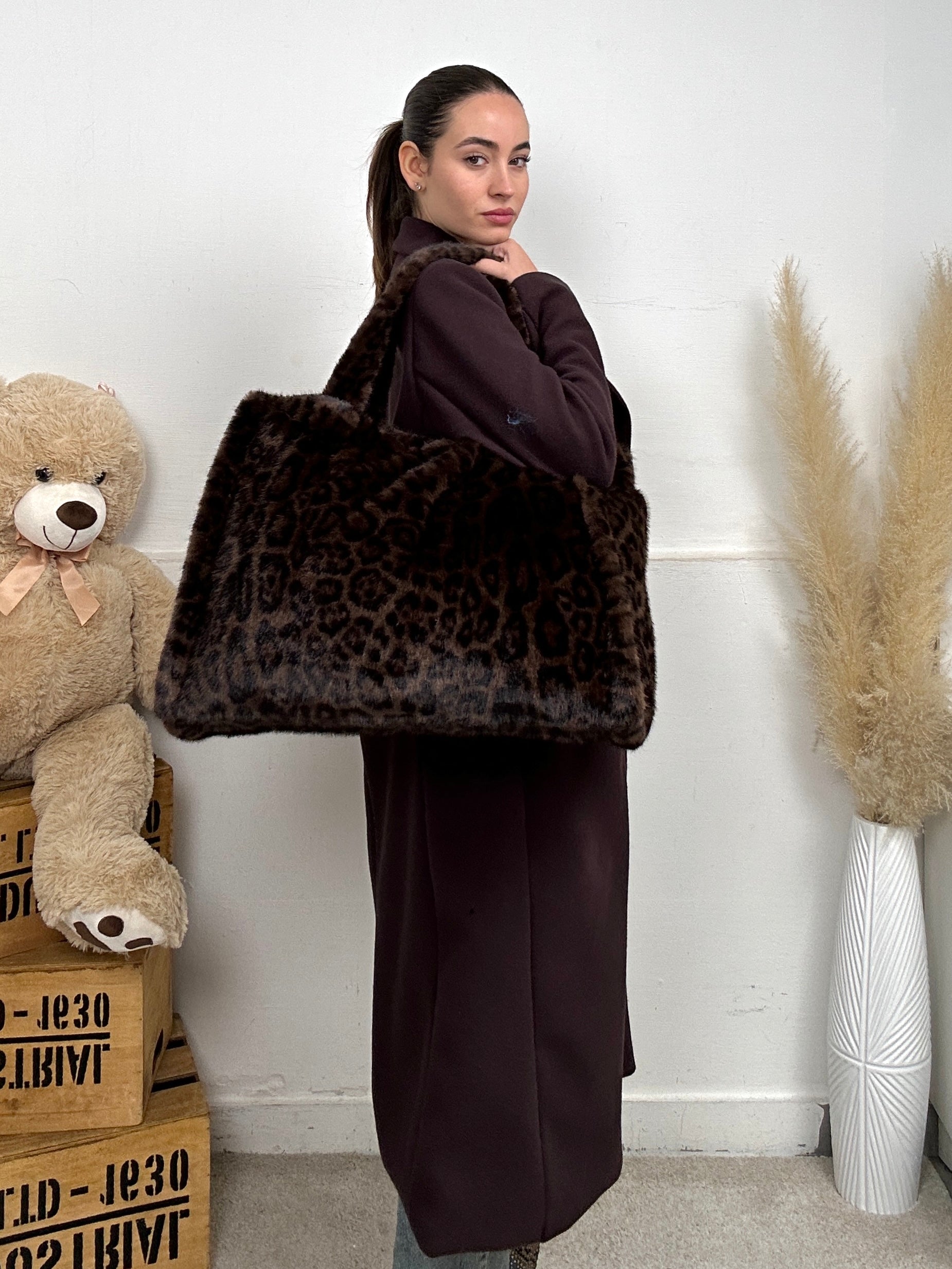 Borsa PELLICCIA, grande e super capiente all'interno, con chiusura con bottone e due manici.