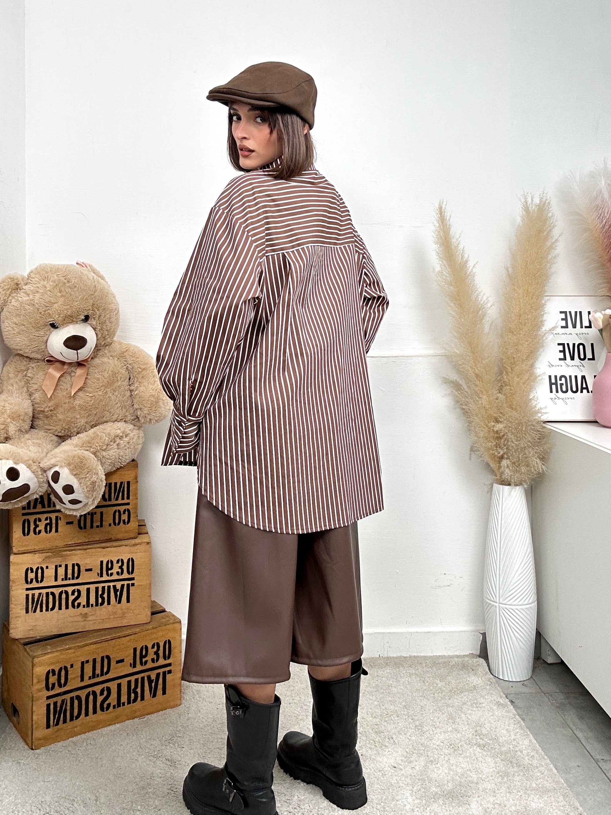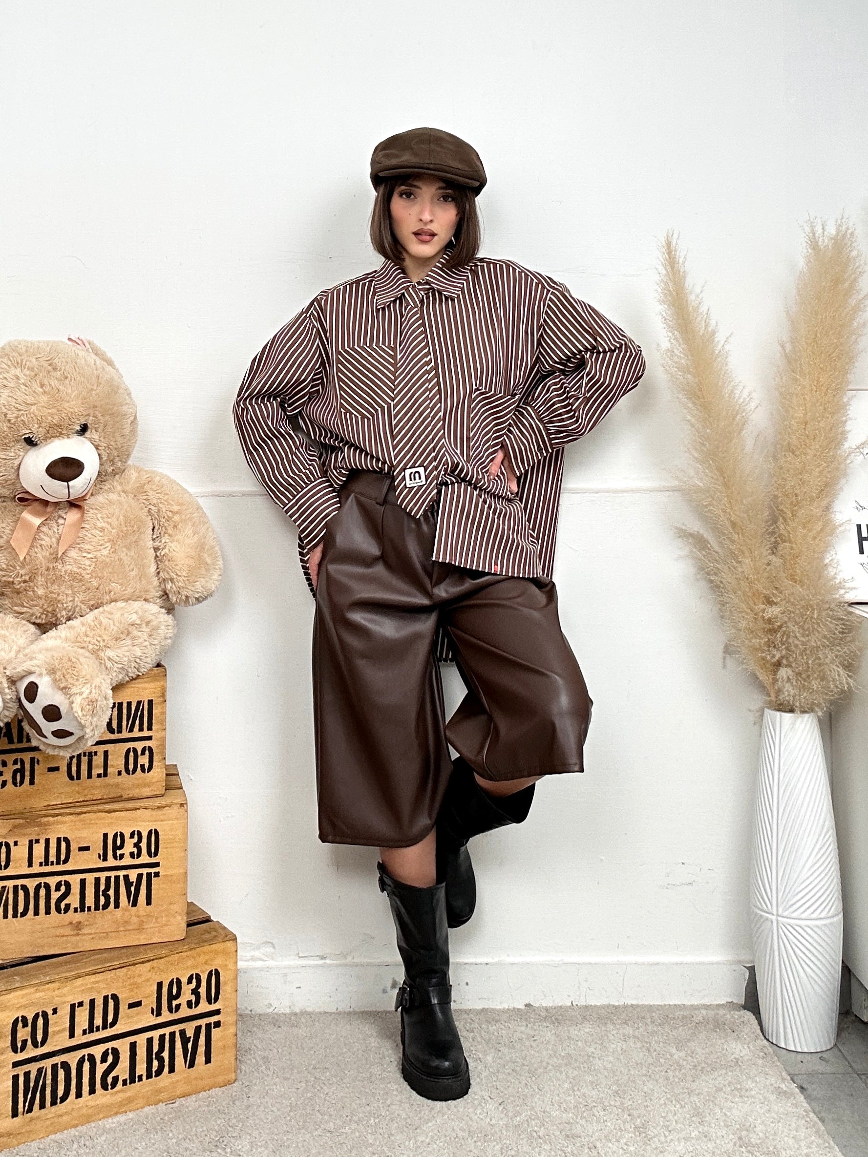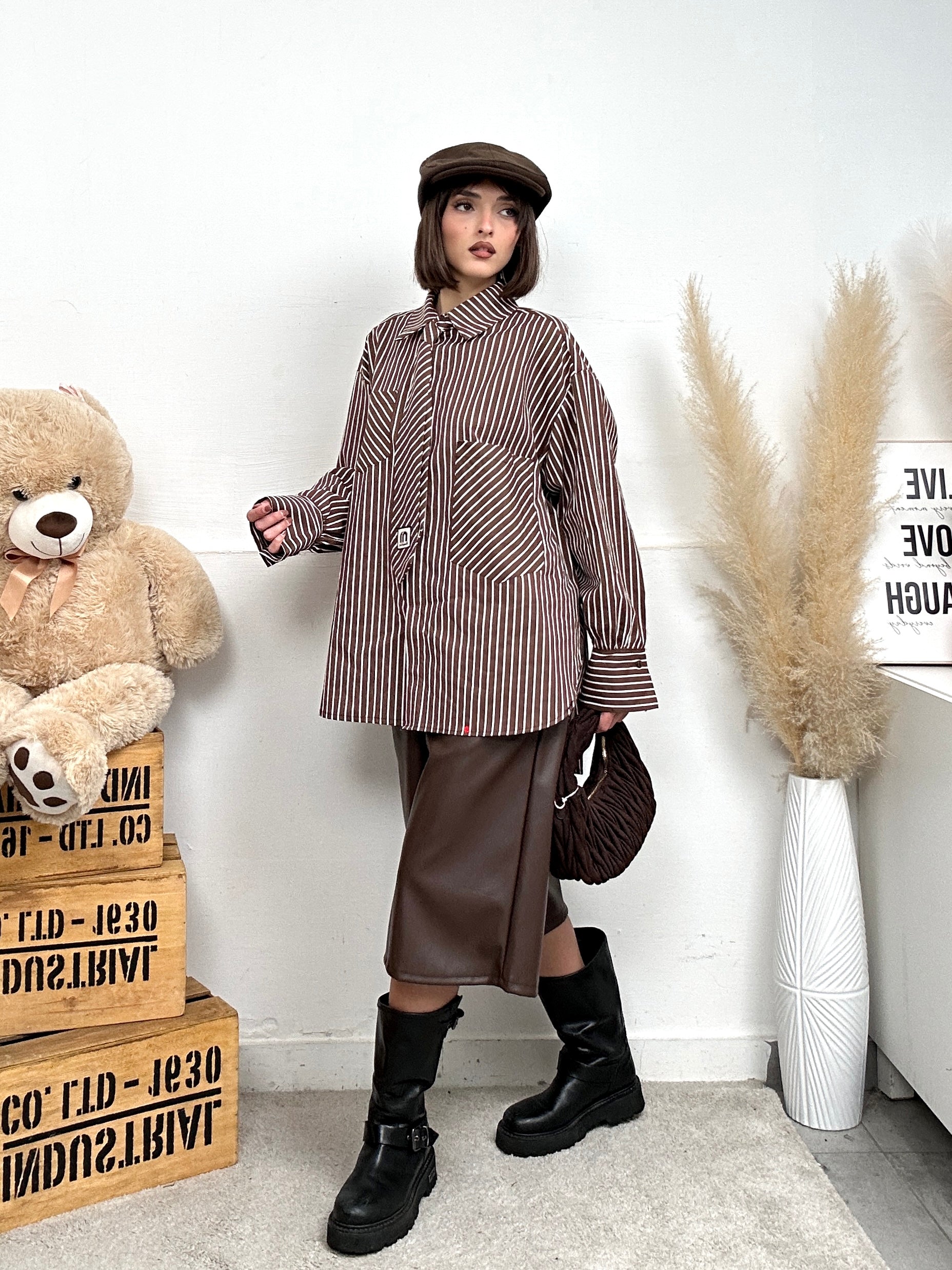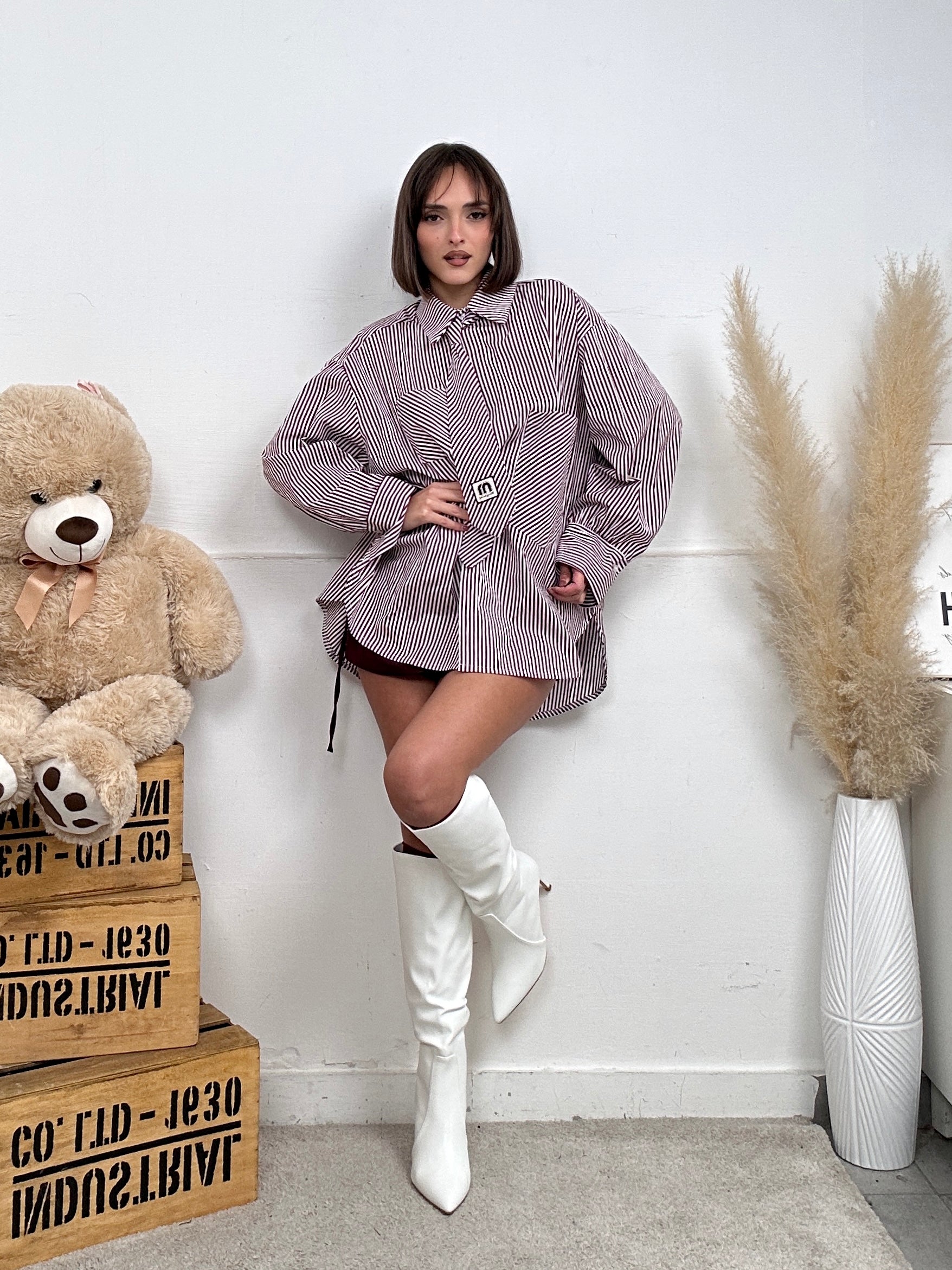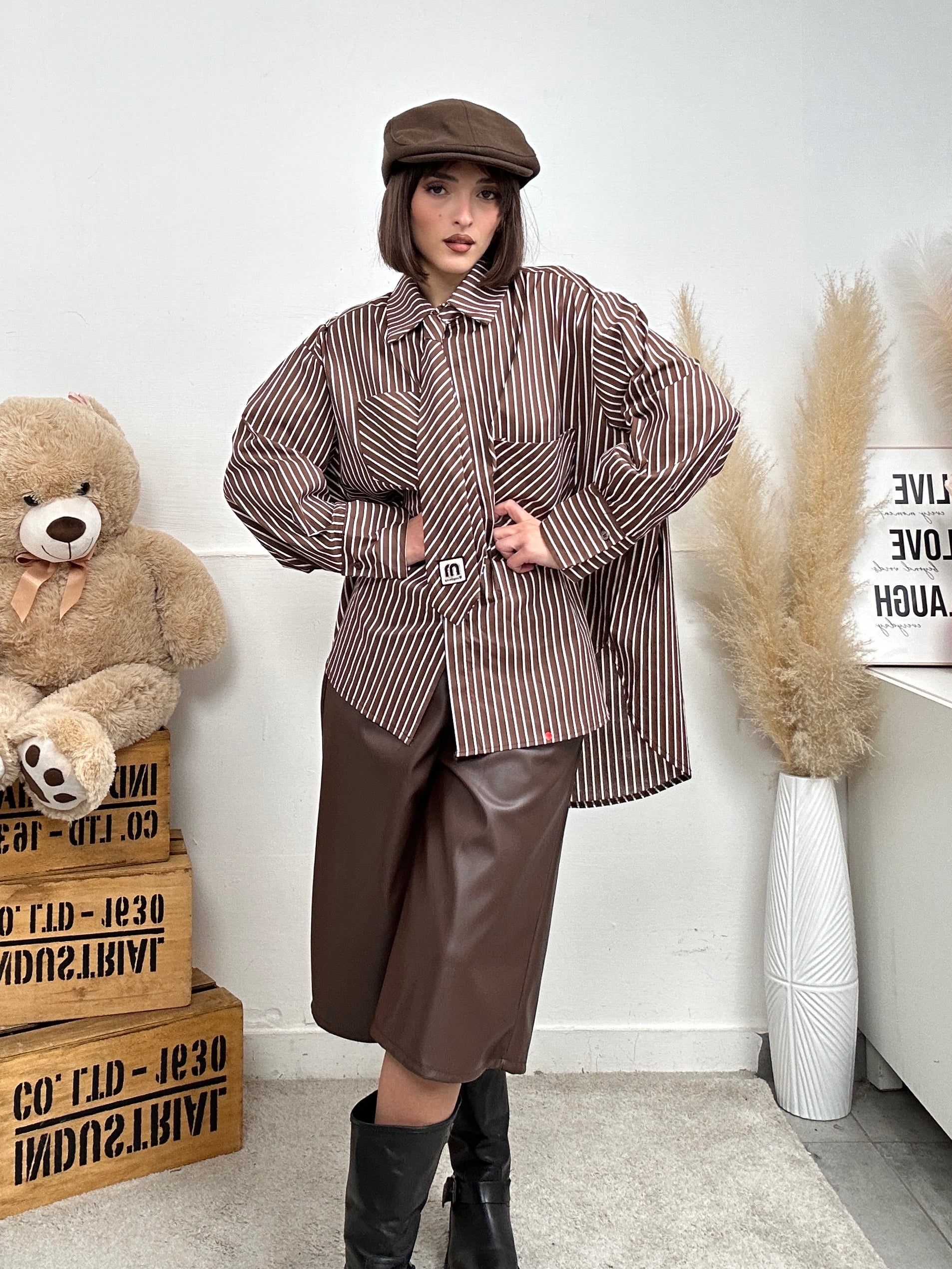 Camicia EXTRA, larga e lunga a righe con cravatta e colletto, presenta due tasche frontali, chiusura con bottoni.