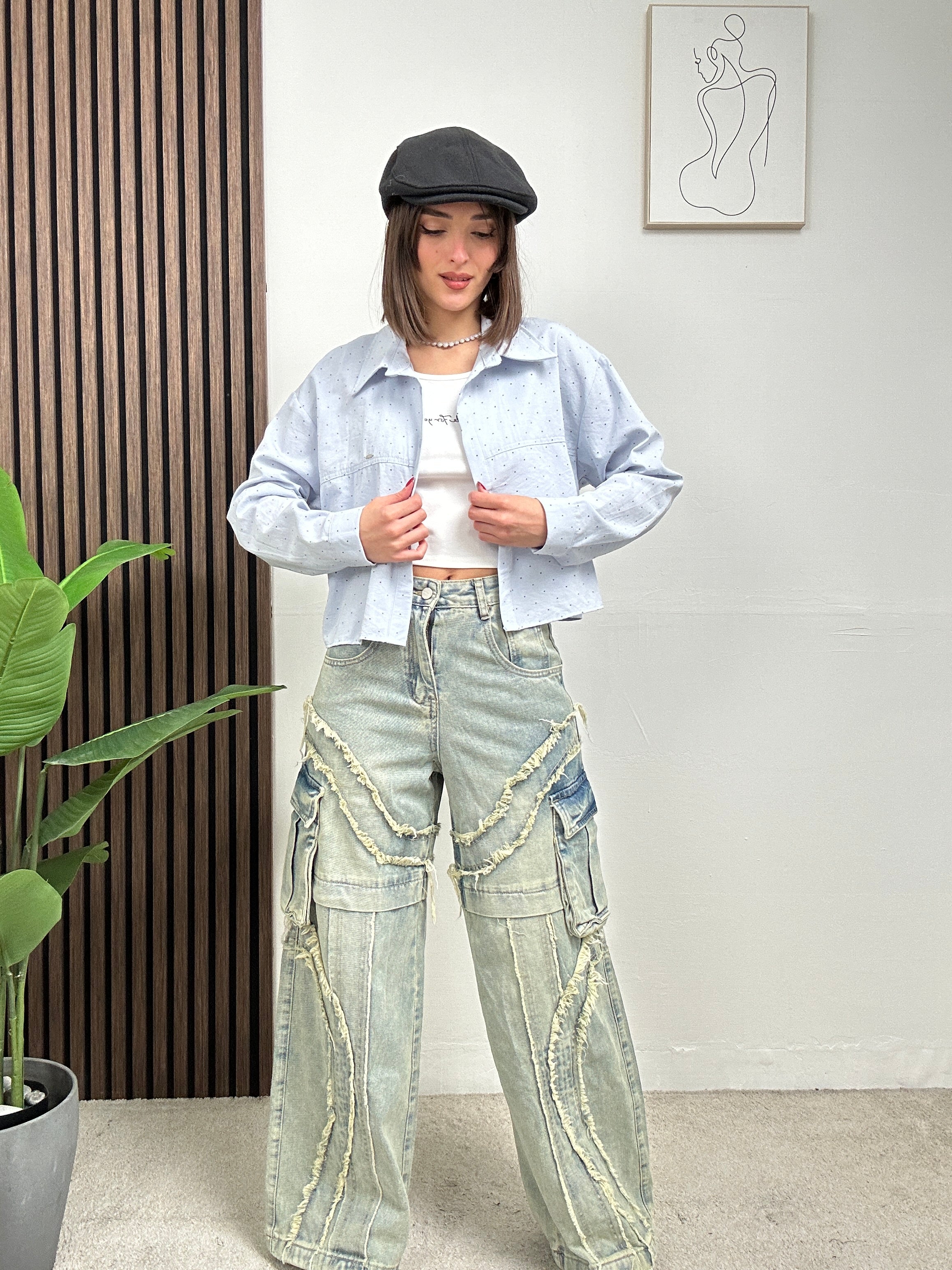 Camicia 2pezzi, presenta la canotta corta con una frase e sopra una camicia corta basic.