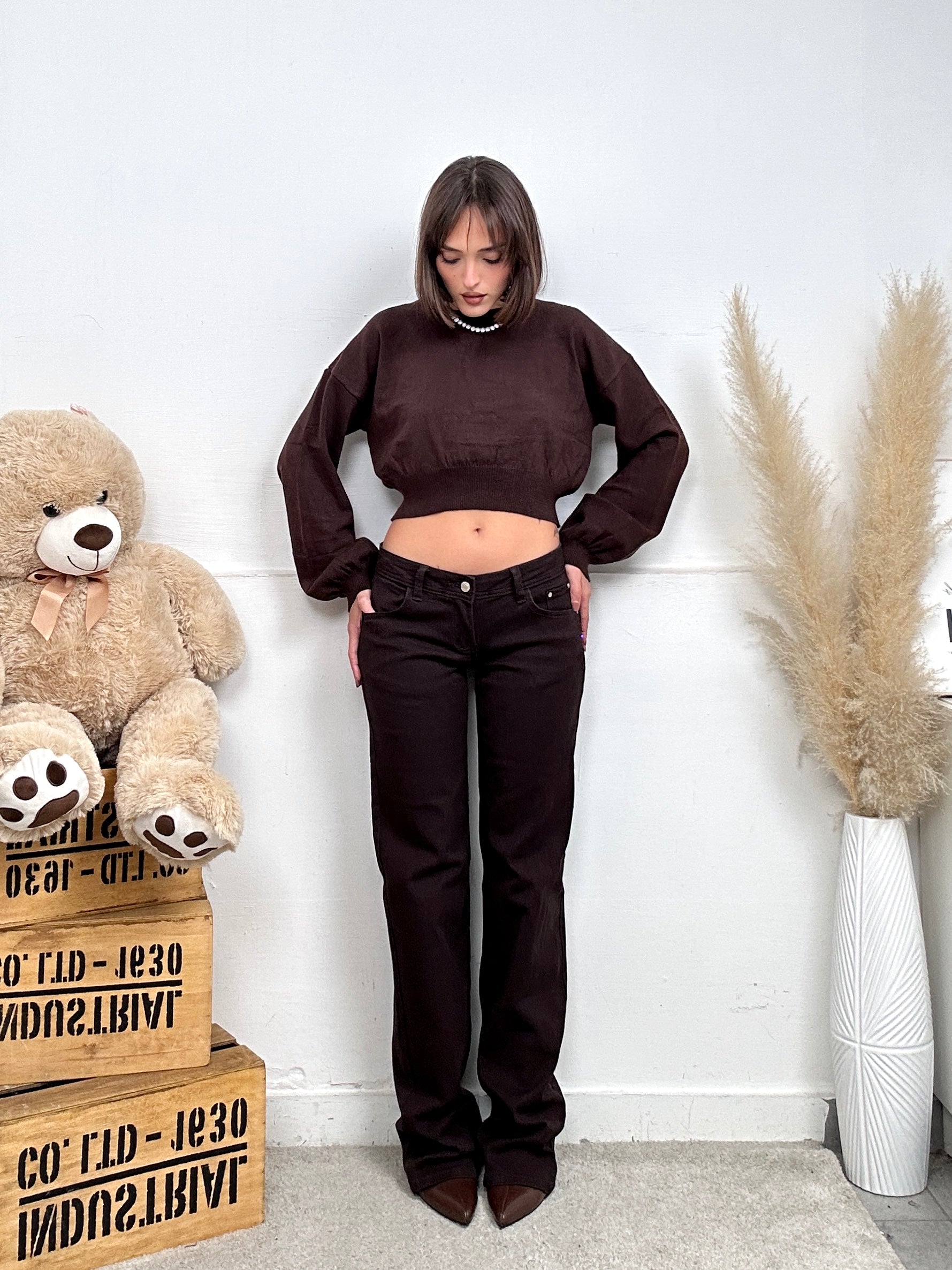 Jeans FLARE, a zampa e a vita bassa con varie tasche e chiusura con bottone.