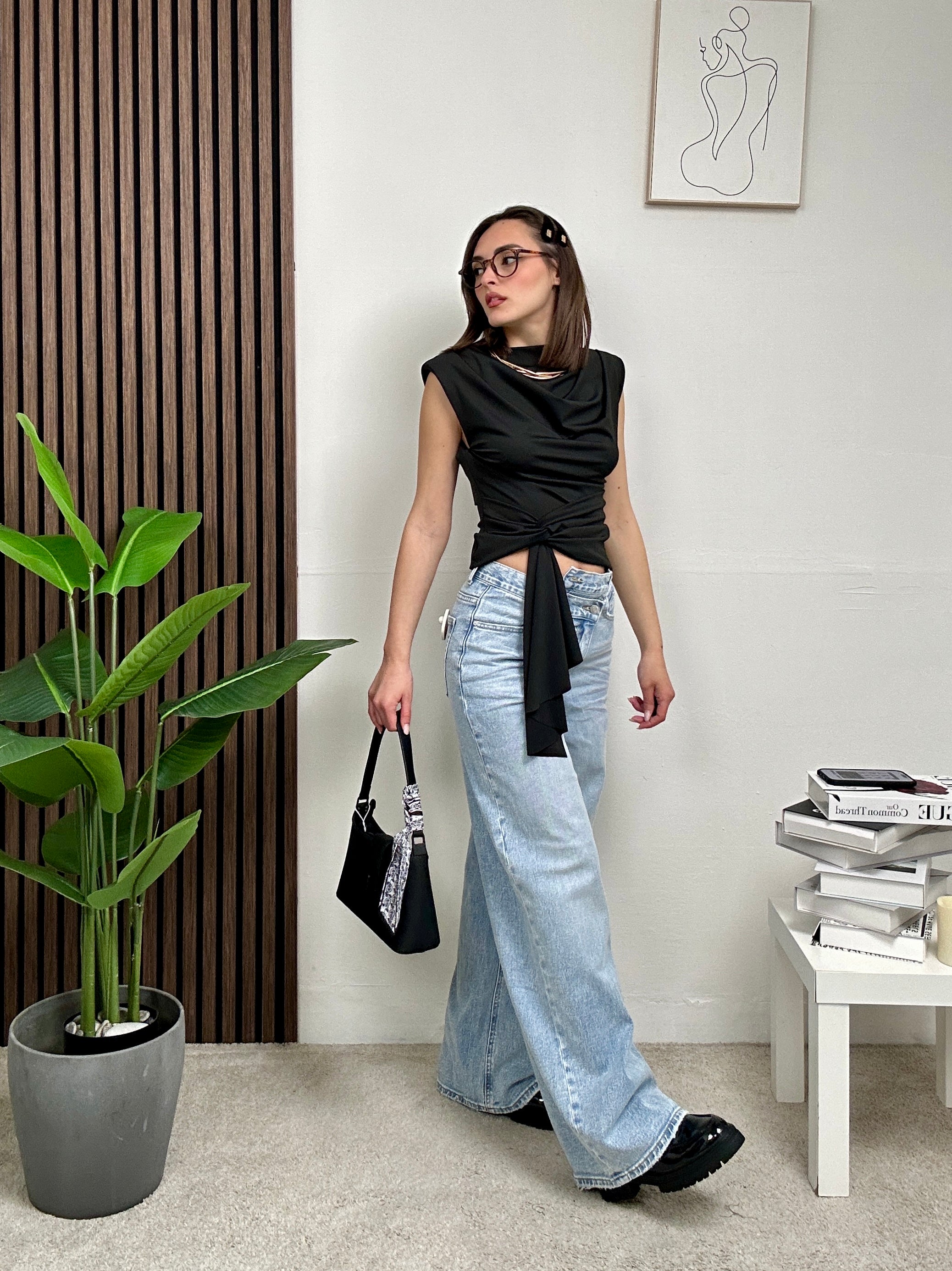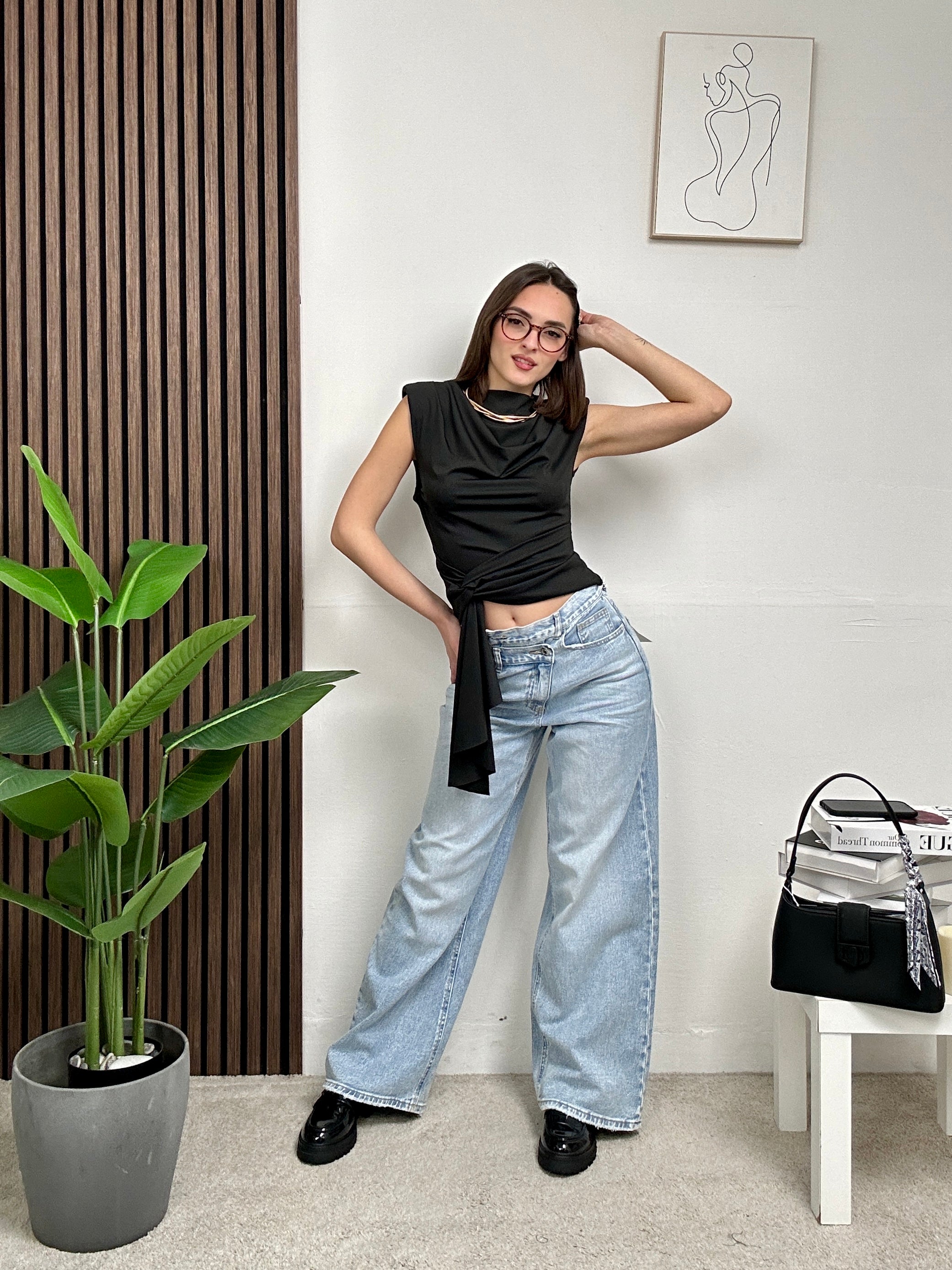 JEANS WHITE a palazzo, con chiusura con bottone e zip e elasticizzato.