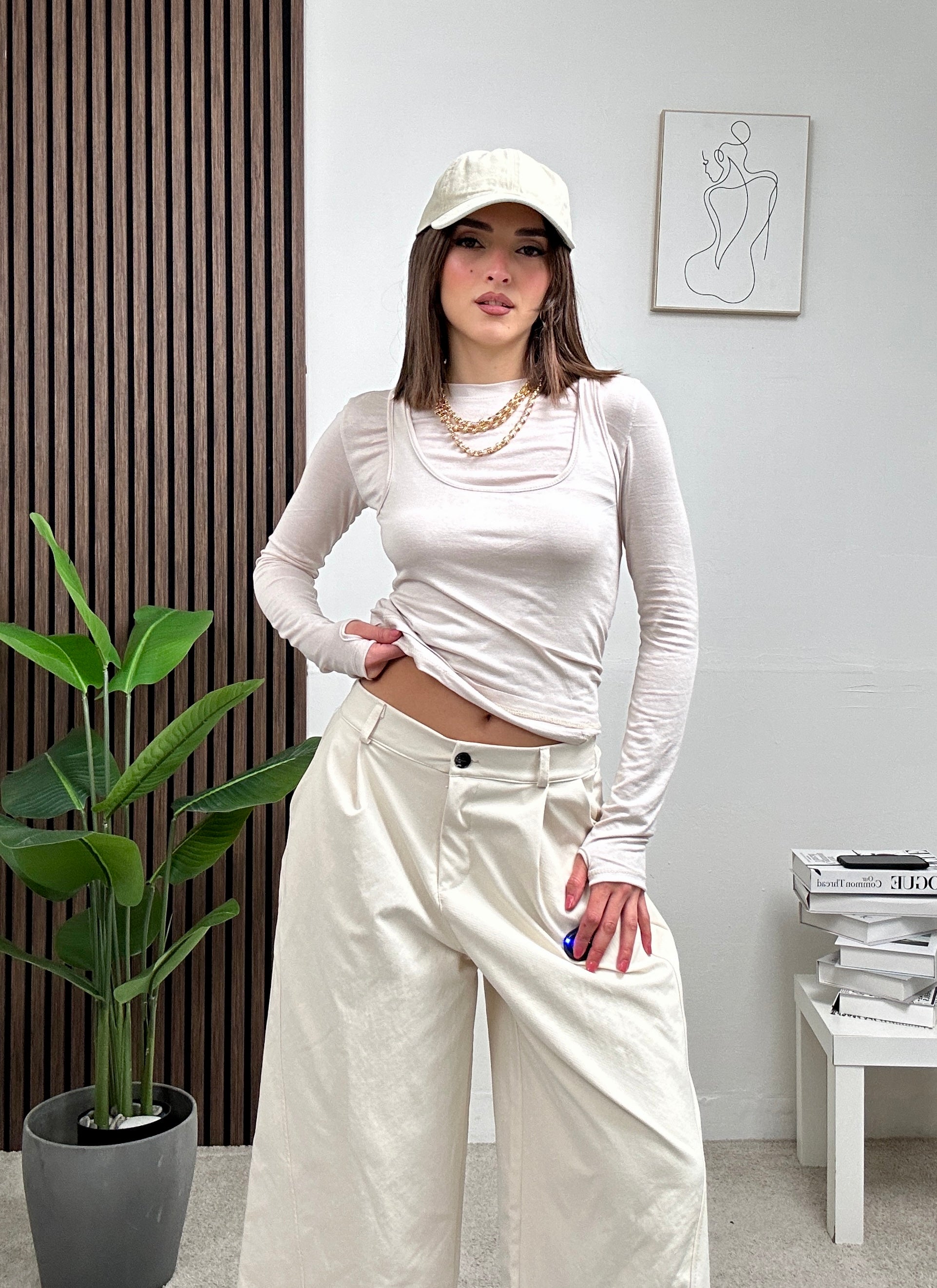 maglia VIOLET, maniche lunghe modellino con canottiera finta sopra e fessura per pollice ad uso guanto, scollo rotondo.