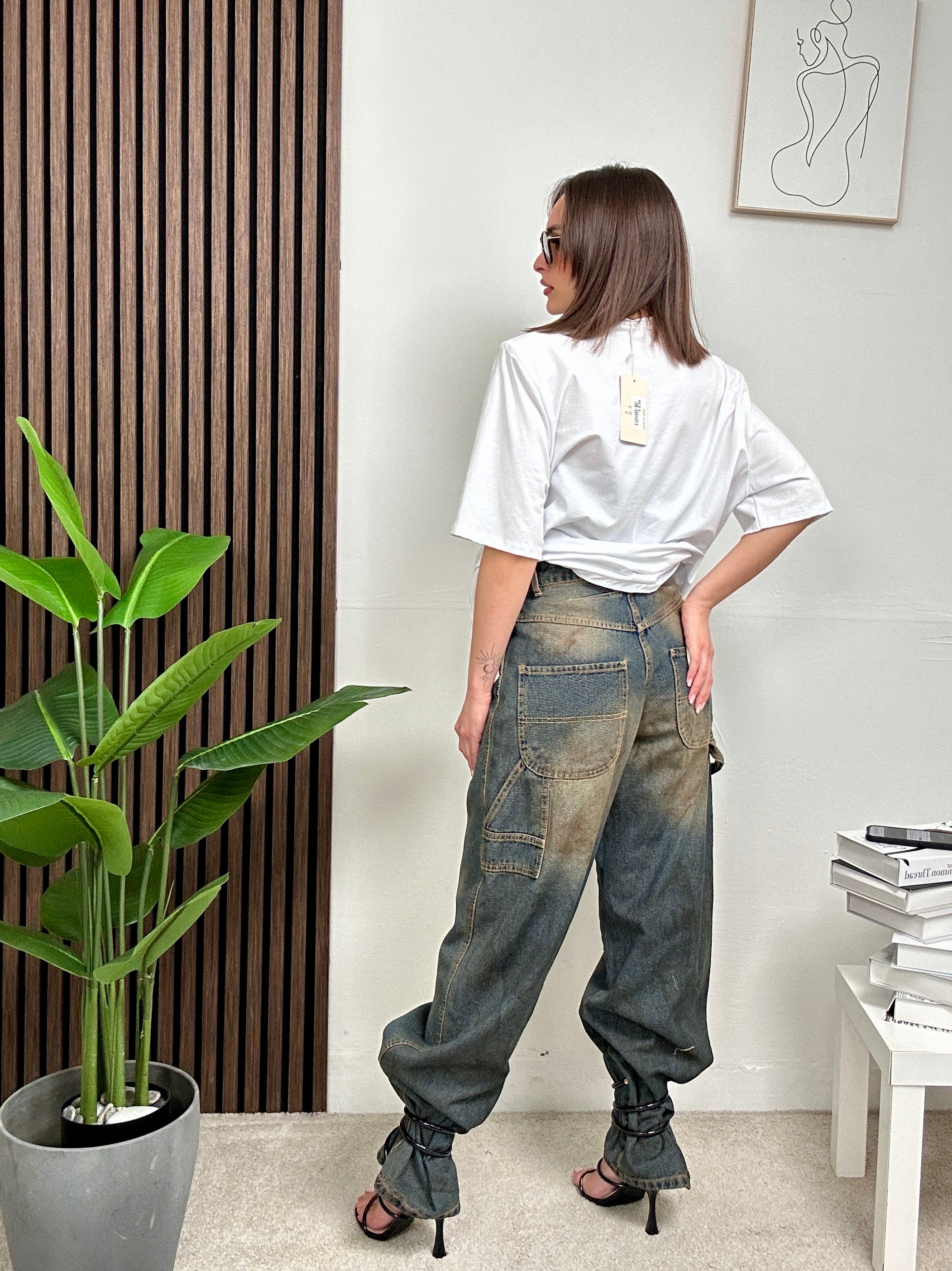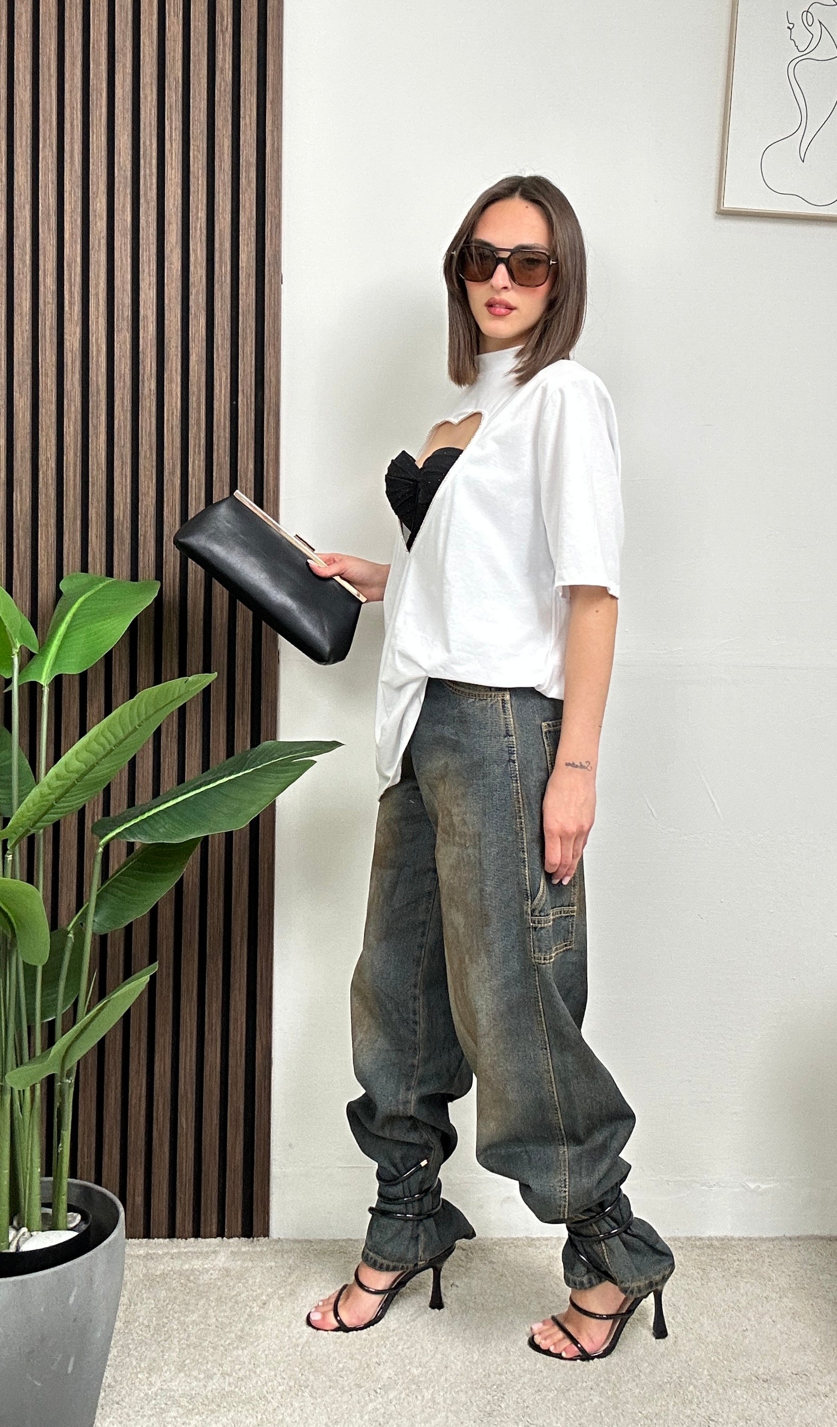 Maglia HEART, lunga e oversize con scollo rotondo e cuore frontale con strass intorno.
