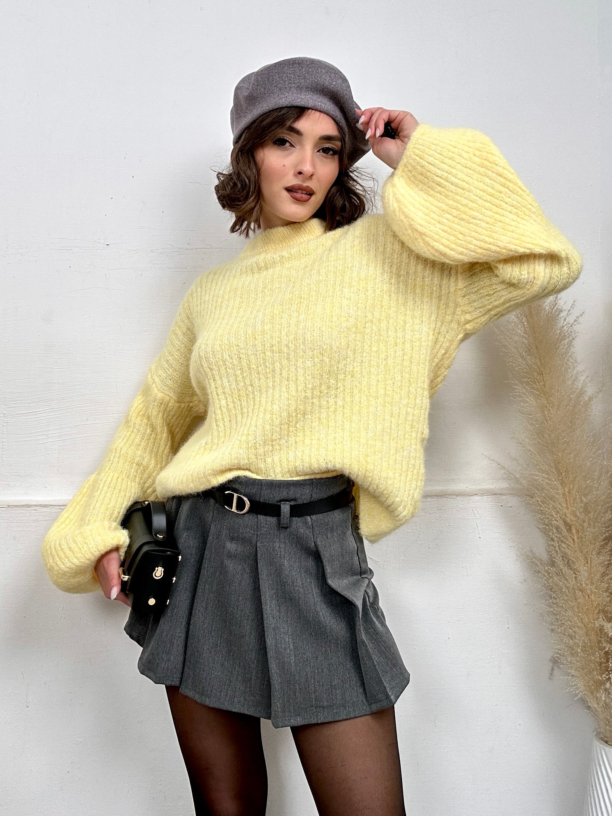 Pullover YELLOW, in lana, lungo oversize a maniche lunghe e con scollo rotondo.