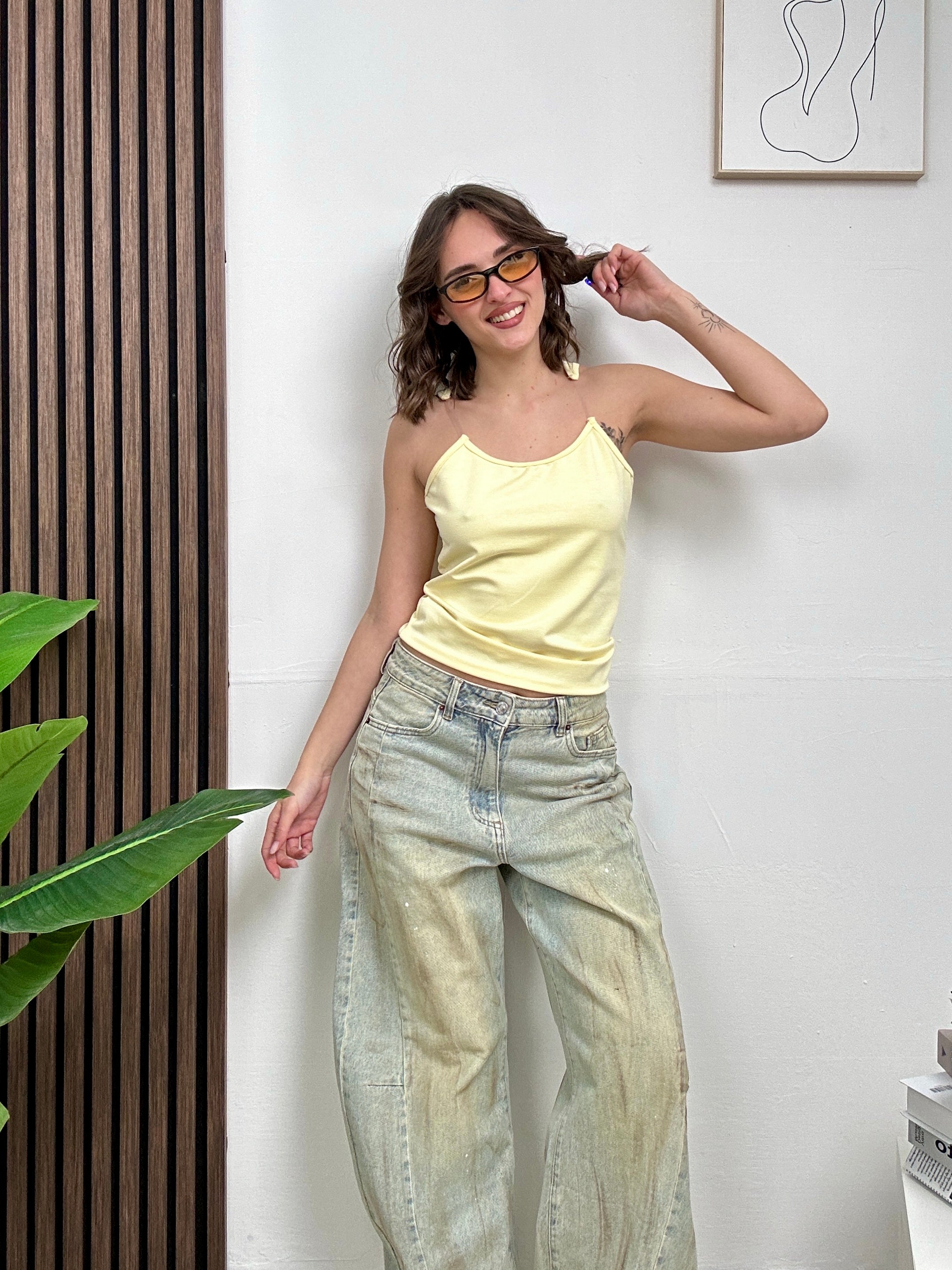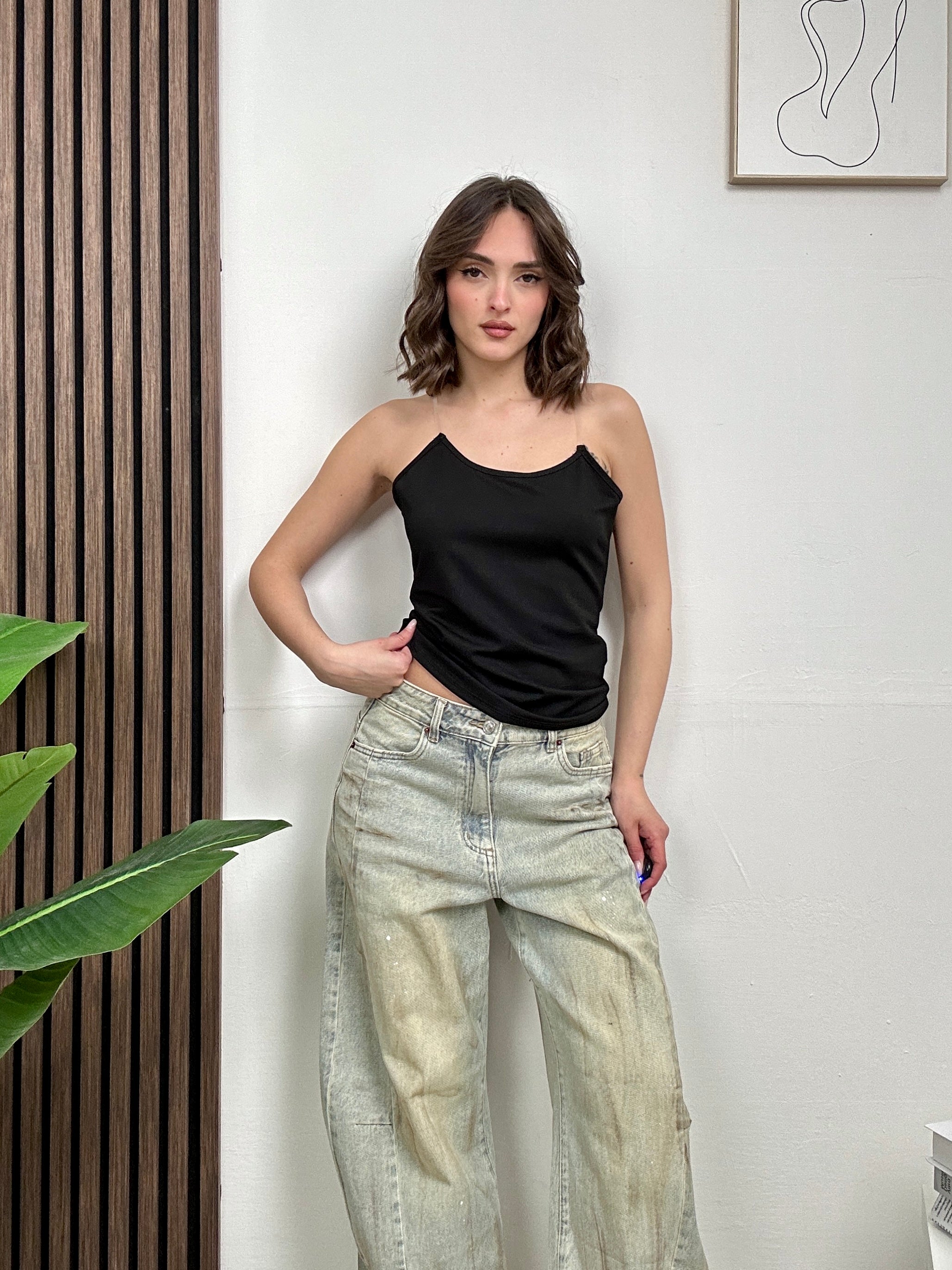 Top PARTICLES, lungo con spalline sottili semitrasparenti, tessuto elasticizzato.