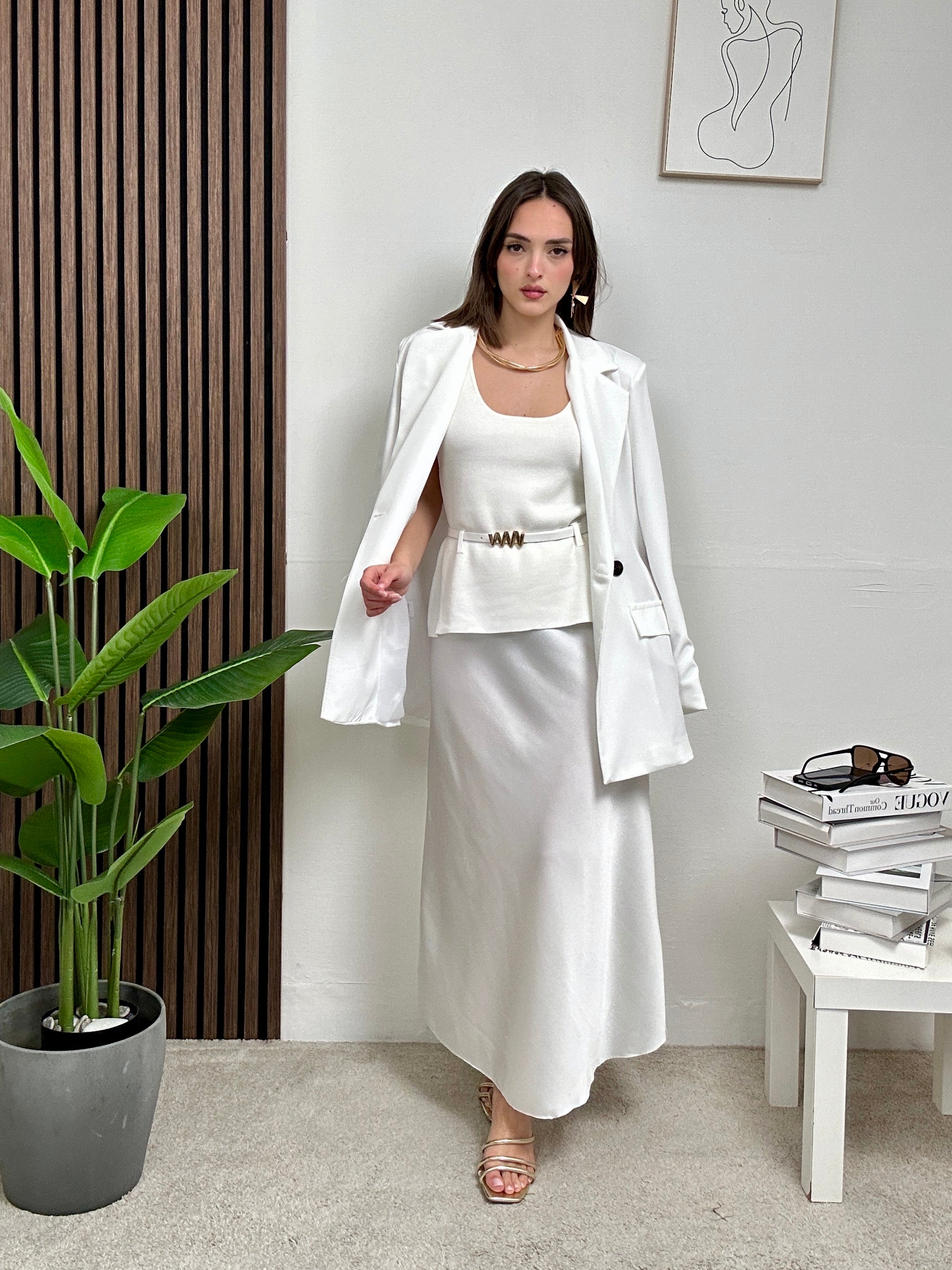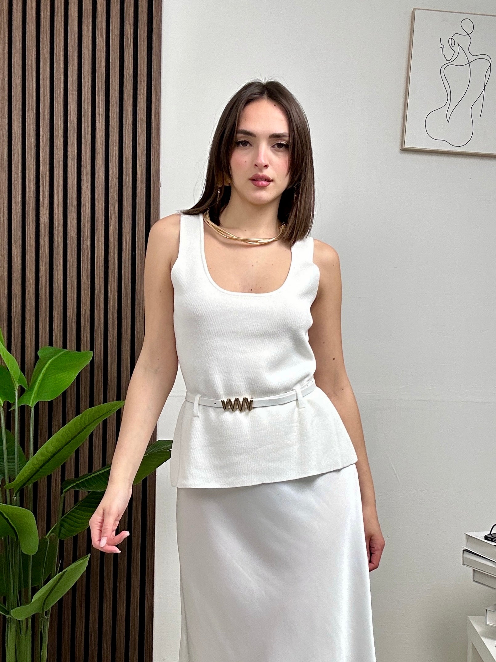 Top CHLOE , lungo con scollo quadrato spalline a canotta con cinturino in vita .